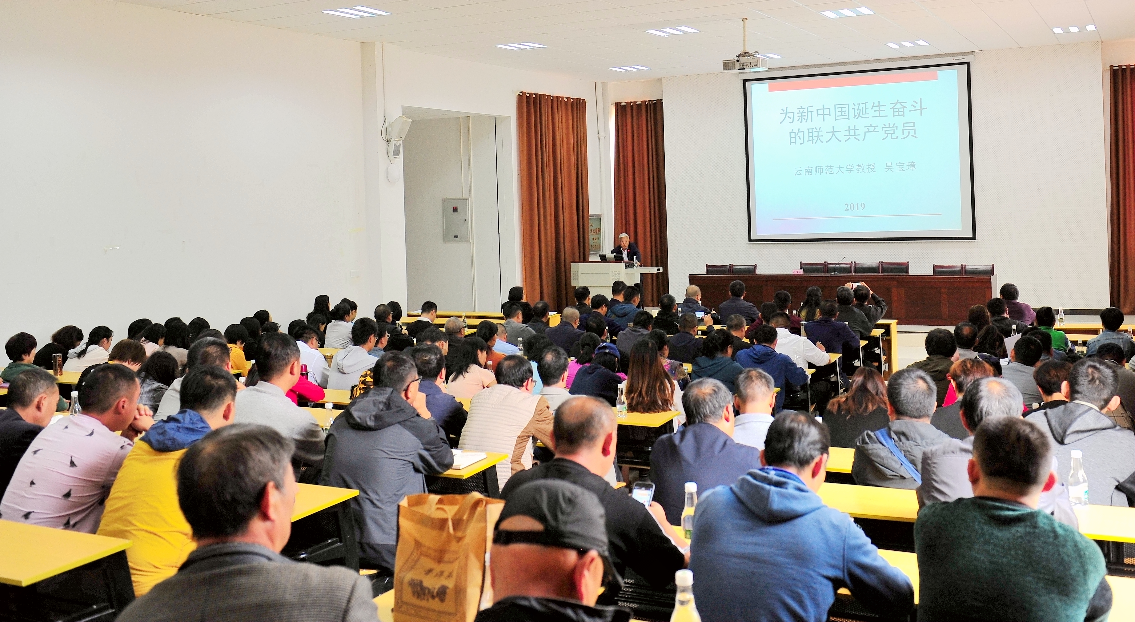 本次報告會是9月19日學院召開“不忘初心、牢記使命”主題教育工作會議之后,學院黨委對主題教育學習計劃的及時部署之一,報告會有幸邀請到云南師范大學吳寶璋教授到學校作題為“為新中國誕生而奮斗的西南聯大共產黨員”專題講座。吳教授長期以來,致力于中國歷史主要是云南近代史研究,成果豐碩。他從“西南聯大的中共組織、‘一二·一’愛國民主運動、緬懷聯大英烈、中共‘超級特工’熊向暉的傳奇經歷、促成北平和平解放的傅冬菊”五個部分再現了那波瀾壯闊的革命歷史,吳教授的講座學識淵博,旁征博引,事例詳實,引人入勝,參會同志獲益匪淺。