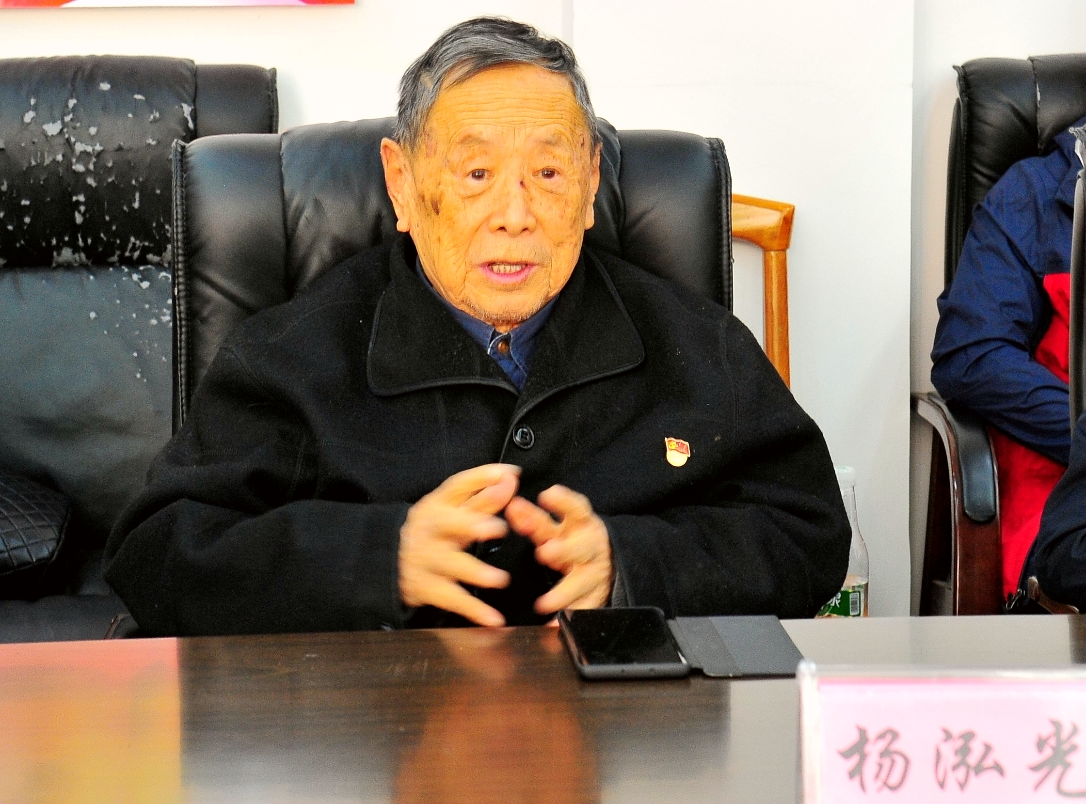 一個多小時的時間里,楊泓光同志娓娓道來那些壯懷激烈的革命故事,革命崢嶸歲月,猶在眼前。他出生在舊中國軍閥混戰、民不聊生的時代,中國的出路何在?人民的幸福何在?他正是懷是一顆救國為民的初心出發的,受早期地下黨員和進步書籍的影響,萌生了革命的種子,他10歲就參加抗日宣傳,17歲在云大附中成為黨的外圍組織“中華民族抗日先鋒隊”的戰士,18歲在云大附中秘密入黨,一直戰斗在學生運動的最前線。他天資聰穎,異常勤奮。根據黨組織的指示,他先后考入西南聯大經濟系、云南大學農學院,以學生的身份掩蔽開展地下黨的工作。他是云大農學院最早的共產黨員,與校外黨組織保持著單線聯系,開展秘密活動。農職院當時叫昆華農校,與昆華工校、昆華女中等眾多學校的地下黨員,都是由他負責聯系。他經常向這些同志傳達黨的指示,布置工作任務,進行黨的教育。那是白色恐怖下的云南,敵我斗爭異常激烈,他的行動每一天都面臨著生死考驗。根據黨的地下工作方針,1943他奉命離開云南,1944年調任沾益特支委員,1948年9月參與領導了沾益播樂中學武裝起義,1949年3 月任中共滇東北地委委員,云南人民討蔣自救軍宣威支隊(后為中國人民解放軍滇桂黔邊區縱隊)支隊長兼政委,4月任中共宣威縣工委書記。這一時期,他成為一名解放云南的戰場上的英勇的戰士,指揮了三十多場大大小小的戰斗,他幽默地說,沒有為革命負過傷,但是流過血:他在前線指揮戰斗,四處奔走,穿著草鞋的腳被戰壕里的鐵絲穿透了鮮血直流。