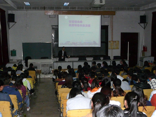 蔣教授介紹了什么是特色、高原農業應該怎樣突出自己的特色、什么是好的管理、管理在高原特色農業發展中的作用、農業管理管什么、怎樣用企業化管理的思路看高原農業的經營、特色農產品的銷售等問題。蔣教授詼諧的語言和精彩的例證引起了師生們的共鳴,會場上多次響起老師和同學們熱烈的掌聲和歡笑聲。本次講座促進了同學們看待農業管理問題視角的轉換,堅定了學習管理專業的信心,也增強了對專業學習的積極性,同時對同學們知識面的拓展以及運用所學知識分析實際農業管理問題能力的提升,起到了很好的促進作用。