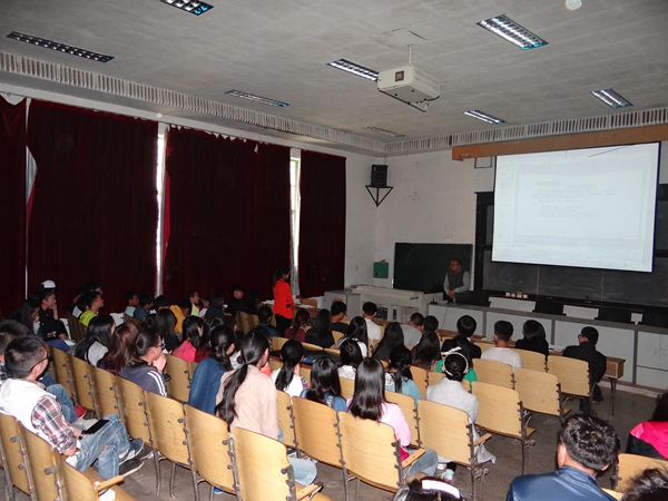 2015年11月16日(星期一)中午1點,經濟管理學院計算機專業課教研室特邀云南維基科技有限公司行業銷售總監周末,在茭菱校區階梯教室為計算機類專業的師生們做了一場題為“云計算之旅”的講座。