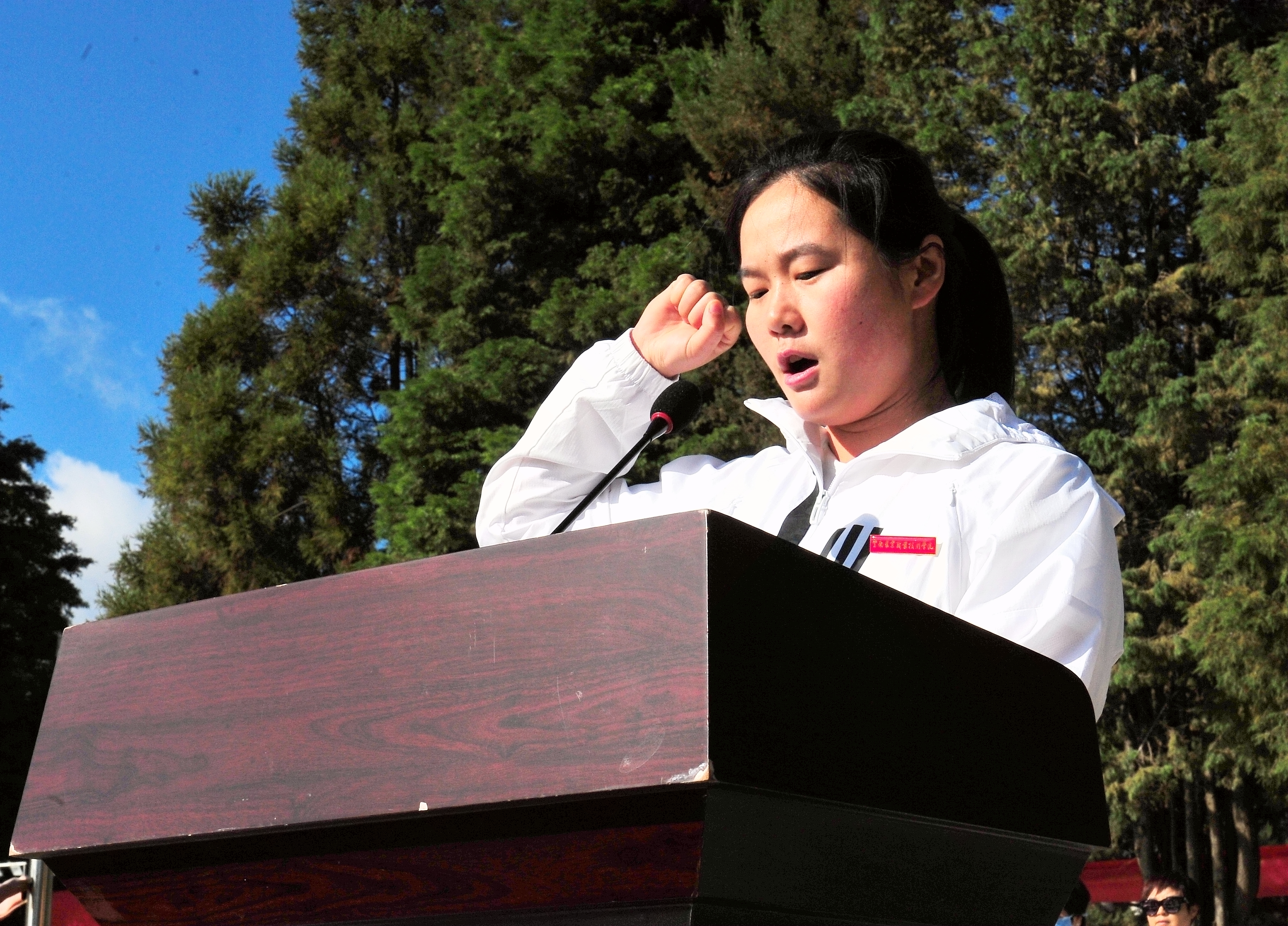 運(yùn)動(dòng)員代表阿苦日洛同學(xué)代表運(yùn)動(dòng)員宣誓
