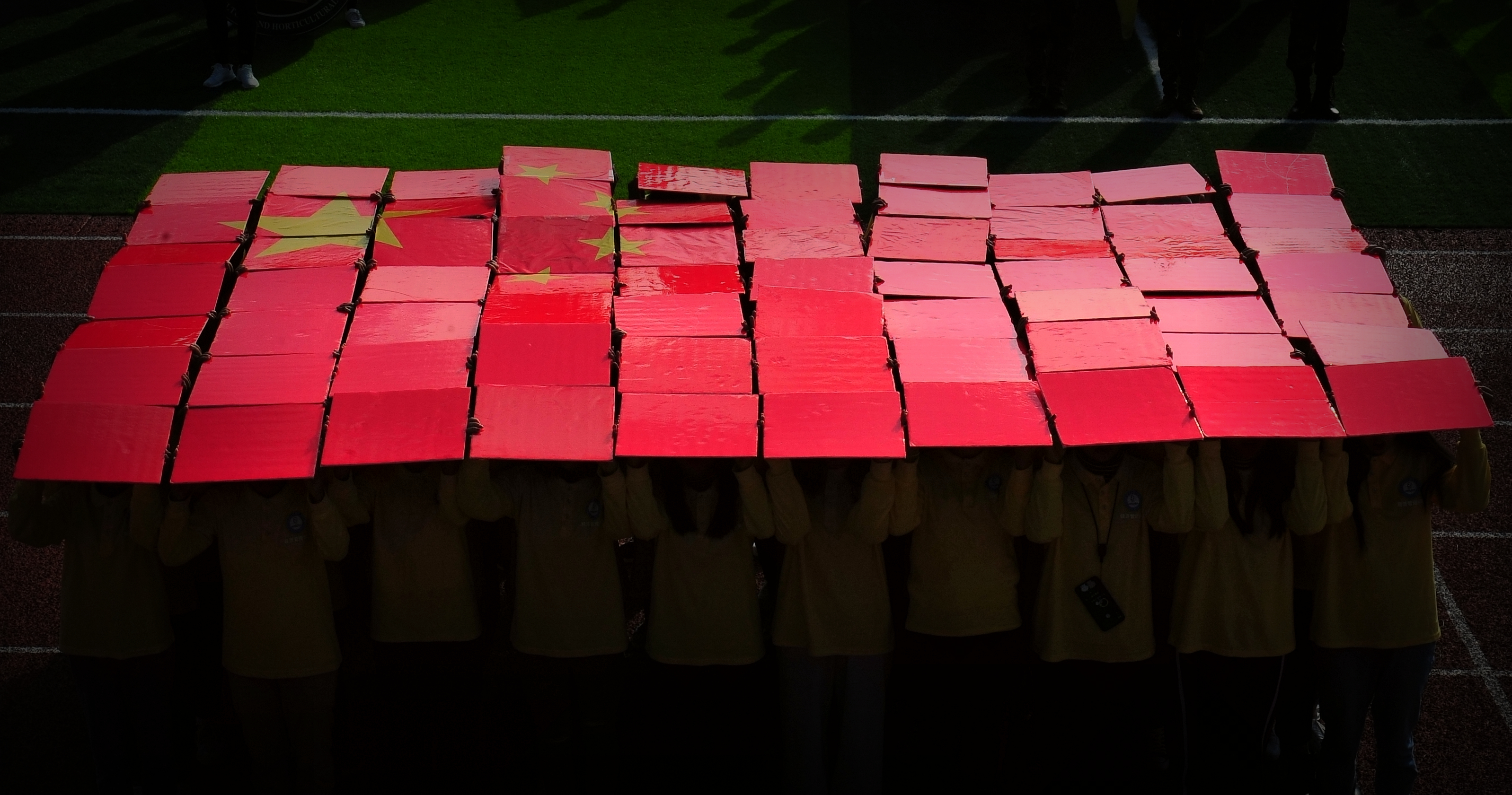 運(yùn)動(dòng)員入場后,升旗儀式開始,在雄壯嘹亮的國歌聲中,全體師生莊嚴(yán)肅立,向國旗行禮。