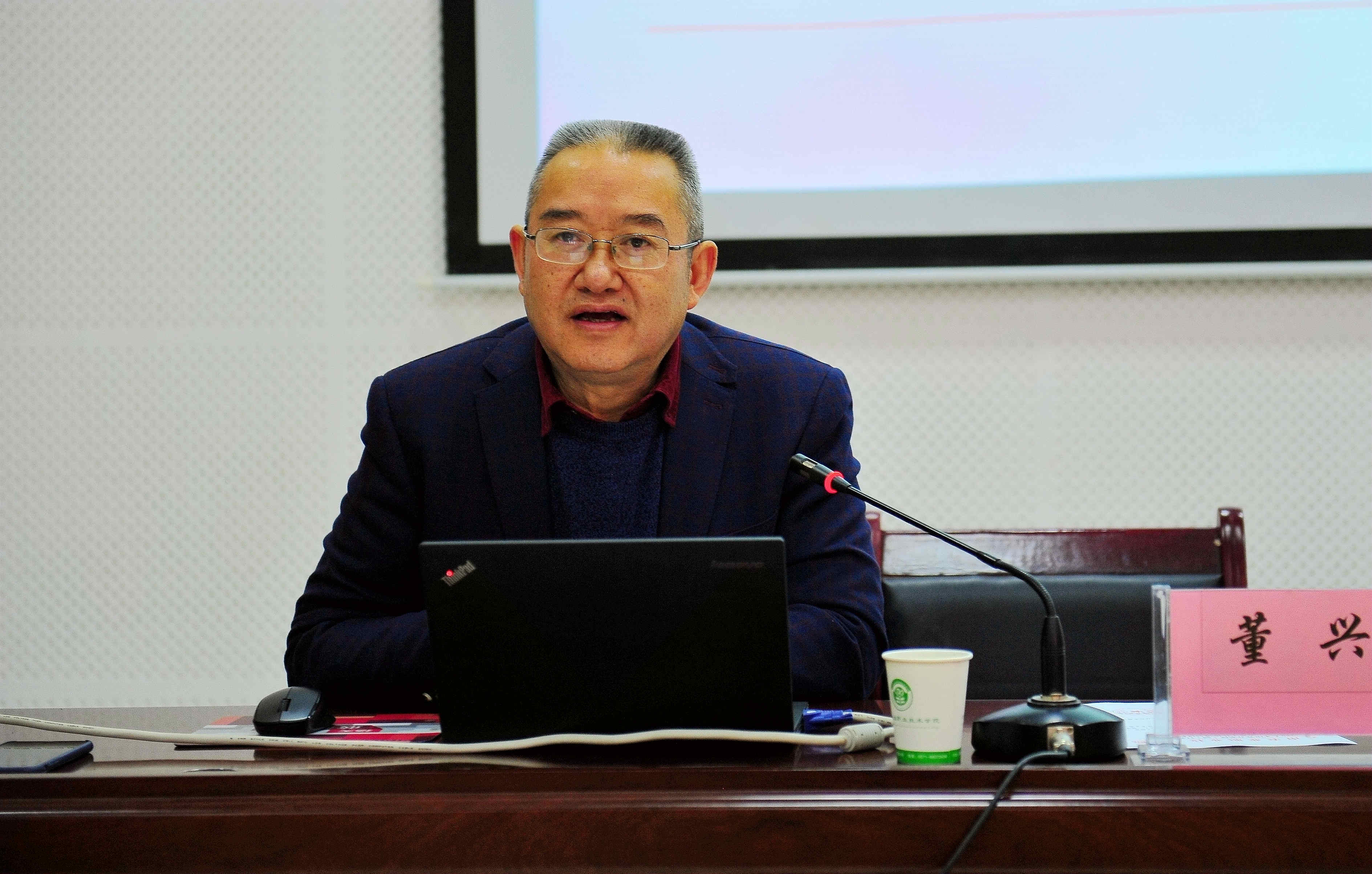 會議特邀知名職教專家、云南高博爾教育評估中心董興主任作專題講座。董興主任就人才培養方案修訂的背景依據、專業標準建設、課程標準開發與教材及資源建設作了詳細的解析,為學院進一步修訂2020版人才培養方案明確了思路,強調了修訂過程中的注意事項。
