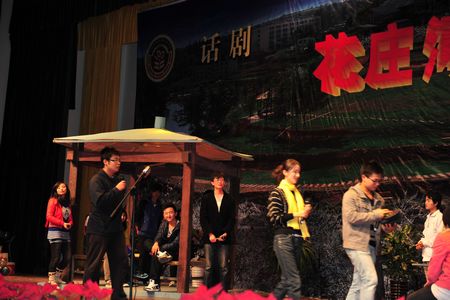 為了使該劇在茭菱校區演得更好,學院宣傳部、院辦、團委提前進行了充分的準備和海報宣傳,《花莊河畔》的主創主演師生利用休息時間加緊排練,11月10日晚演出如期進行。話劇《花莊河畔》以學院小哨校區為背景,以我院畜牧獸醫系與園藝與園林工程系學生的學習生活為素材,以新一代大學生的學業、創業,友情、愛情為主線,形象地反映了大學生對待學習的認真態度,對創業的躍躍欲試,對友情愛情的執著追求,對未來的美好期待!