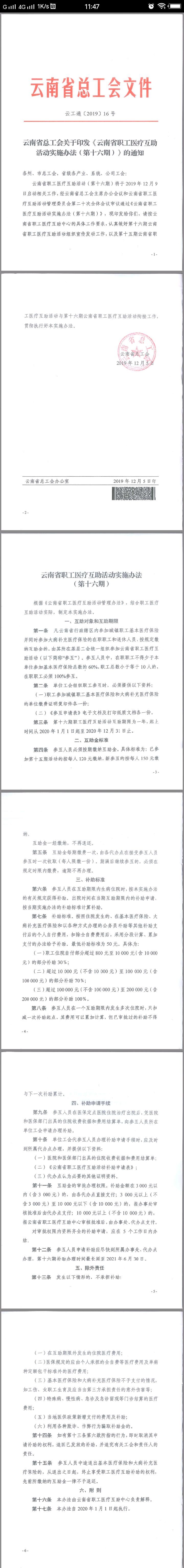 辦理《云南省職工第十六期醫療互助活動》的補充通知
