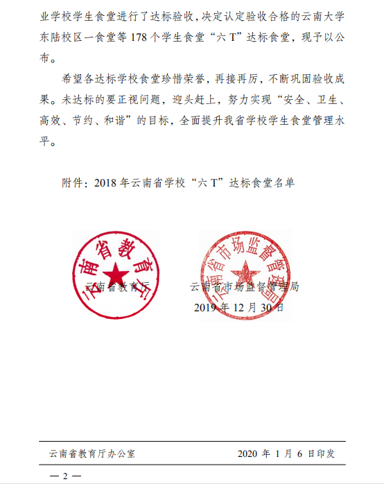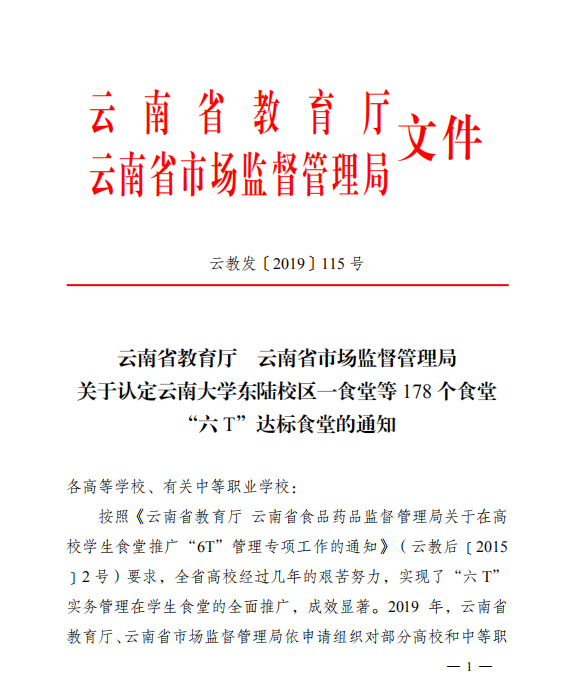 通知中心根據(jù)《云南省教育廳 云南省市場監(jiān)督管理局關(guān)于認(rèn)定云南大學(xué)東陸校區(qū)一食堂等178個食堂“六T”達(dá)標(biāo)食堂的通知》(云教發(fā)〔2019〕)精神,學(xué)院“田之苑”學(xué)生食堂經(jīng)云南省教育廳、云南省市場監(jiān)督管理局達(dá)標(biāo)驗收,被認(rèn)定為“六T”達(dá)標(biāo)食堂,這充分體現(xiàn)了學(xué)院對學(xué)生食堂的管理成效,也是學(xué)院后勤服務(wù)現(xiàn)代化的重要體現(xiàn)。希望相關(guān)部門再接再厲,推動后勤服務(wù)管理水平再上新臺階,為實現(xiàn)“安全、衛(wèi)生、高效、節(jié)約、和諧”的后勤服務(wù)現(xiàn)代化目標(biāo)不懈努力!(黨委宣傳部)