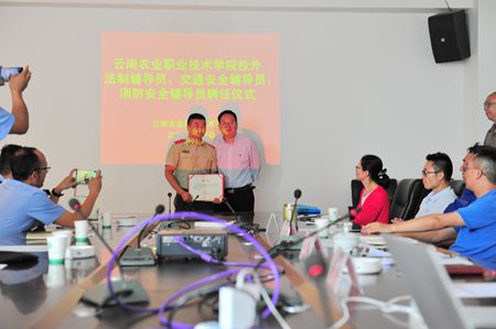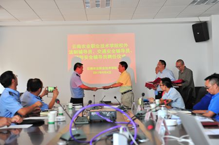 黨委書記崔金賦和院長文俊為聘任我校的校外法制輔導員、交通安全輔導員、消防安全輔導員頒發聘書。受聘的輔導員講話,表示會配合好學校的各項工作,積極幫助學校開展相關工作。
