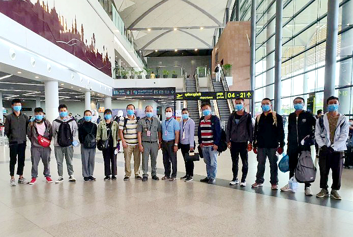 1、工作組接到回國航班第3次改簽的通知是3月27日下午16:00,及時向學院報告,同時向柬埔寨省政府杰辛安副秘書長通報。工作組當晚從基地出發,連夜趕到距離基地400公里的柬埔寨首都金邊波成東國際機場,平安的趕上了28日中午12:00的回國航班。欣慰的是省政府杰辛安副秘書長親自駕車趕到金邊為工作組送行。