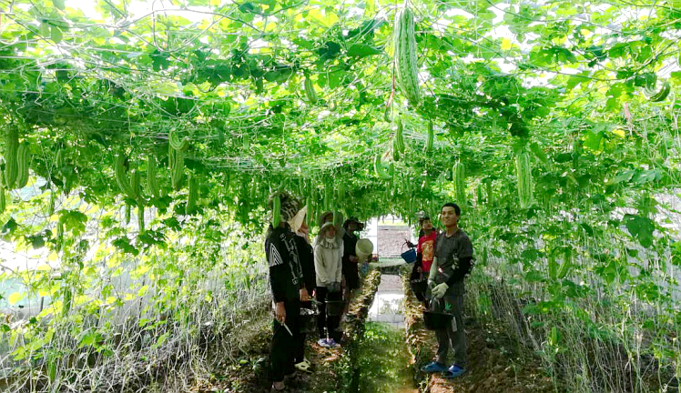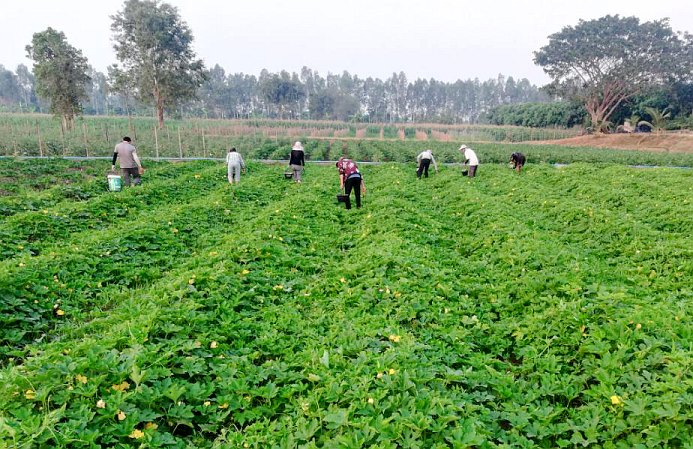 2、示范種植的蔬菜品種有較好的展示效果,小黃瓜、冬瓜、豇豆、茄子、苦瓜、南瓜、小米辣和部分小果型番茄選用當地品種示范展示,都有較好的生長勢和產量表現,其中:小黃瓜產量達到14600千克/公頃(播種—收獲完成60天);冬瓜產量達到28125千克/公頃(播種——收獲完成75天)。