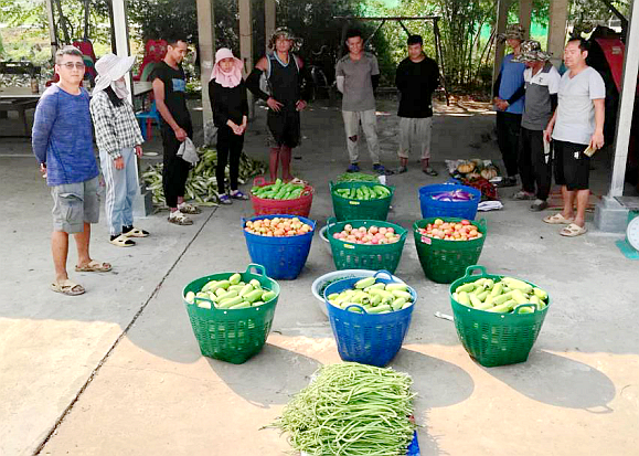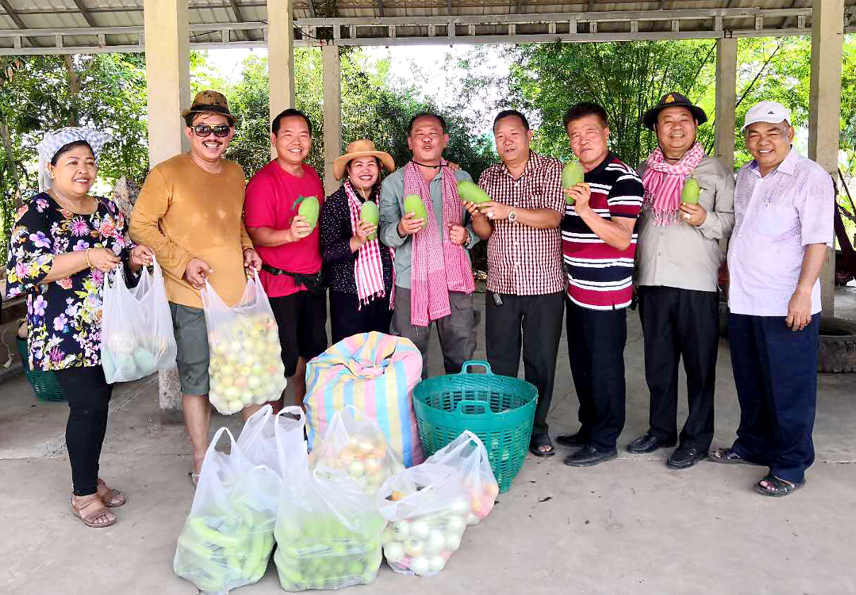 3月21日,班迭棉吉省省長和柬埔寨王家軍第五軍區 副司令,在波貝市市長和相關廳、局領導的陪同下到基地視察工作,看望了新冠肺炎疫情期間仍然在柬工作的工作組全體成員,并向工作組贈送了800個防疫口罩?;毓麑嵗劾鄣膱雒嫖耸¢L和副司令一行,工作組請他們體驗采摘、分享了各種農產品。