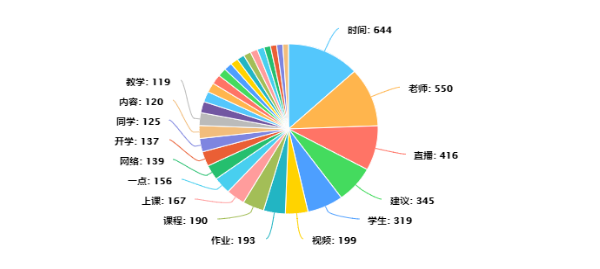 在反饋中,學生對于在線學習的意見更多地聚焦于時間、老師、直播以及建議等,是因為大多數學生來自農村,白天需要幫助家人干農活,所以從時間上不能完全按照直播時間來完成學習,希望老師采取直播與錄播結合的方式,便于他們勞動結束后,回家仍然能看到老師的教學視頻,完成課程學習。