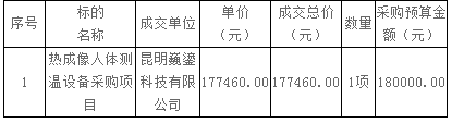 通知中心云南農業職業技術學院于2020年3月23日組織完成了小哨、茭菱校區熱成像人體測溫設備采購項目(項目編號:農職(HQXJ)20200225詢價評審工作,根據評審小組的評審結果,現將結果情況公示如下: