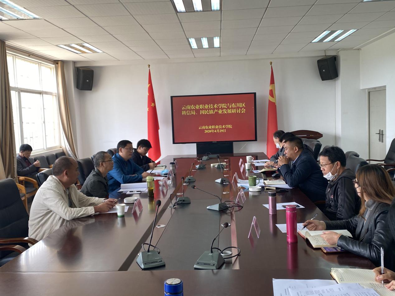 研討會上,蘇華偉副院長首先向來訪的嘉賓介紹了學院的歷史、現狀及發展規劃,并代表學院對劉副局長一行的到來表示熱烈歡迎。隨后,劉峰副局長、王東副局長分別就脫貧攻堅服務點因民鎮發展現狀及包干村槽子街村易地整體搬遷后產業發展過程中遇到的困難和問題進行了介紹,結合學院近幾年在東川區開展的三區科技人才專項計劃服務突顯出來的成績和優勢,希望學院能給予幫助和支持,促使因民鎮種植和養殖產業方面更好地發展,順利完成脫貧攻堅、鄉村振興。