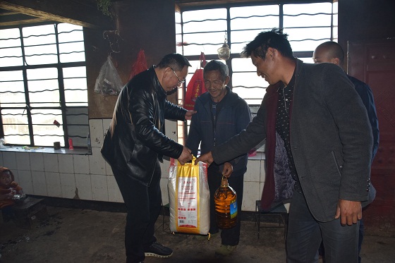 2月15日上午,文俊院長一行代表學院黨委慰問學院駐村扶貧隊員,送去洗漱包、四件套、取暖器等生活慰問品,為他們的工作生活排憂解難,幫助協調解決實際困難問題。隨后,文俊院長一行代表學院黨委深入農戶看望慰問部分掛鉤貧困戶、老黨員、殘疾困難群眾,為貧困戶送去一袋大米和一桶食用油,為貧困戶送去黨委的關心關懷,慰問組轉達學院黨委的新春問候和美好祝愿。文俊院長一行深入農戶調研走訪,與貧困戶親切交談,了解貧困戶生產生活以及人居環境、經濟收入、身體狀況等,鼓勵貧困戶樹立信心,自力更生,積極發展產業,努力改變現狀。