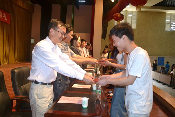 在雷鳴般的掌聲中,學校黨政領導集體為2014屆畢業生代表頒發了畢業證書,為2014屆省級和校級優秀畢業生代表頒發了榮譽證書。并一同各二級學院的領導與畢業生代表合影留念。