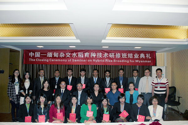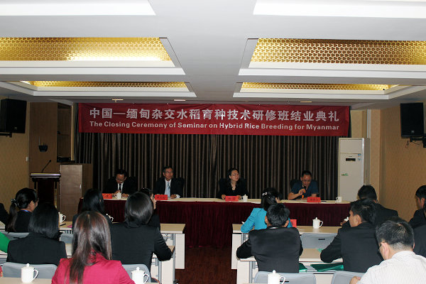 儀式上文俊院長發表了熱情洋溢的結業講話,他說在國家農業部國際交流中心、云南省農業廳的高度重視下,在各位學員的積極配合下,經過大家的共同努力,通過理論教學和實踐教學,由云南農業職業技術學院承辦的“緬甸雜交水稻育種技術研修班”即將圓滿完成任務。他總結本次培訓班具有以下五個鮮明特點:一是領導高度重視。二是學習氛圍濃厚。三是教學形式多樣。四是培訓內容新穎。五是培訓效果顯著。隨著“中國-緬甸農業技術培訓中心”的成立,學校將進一步加強與緬甸的交流與合作,希望農業部國際交流中心,一如既往地關心和支持學校的發展,努力推動中國與緬甸今后在農業和教育領域的合作。