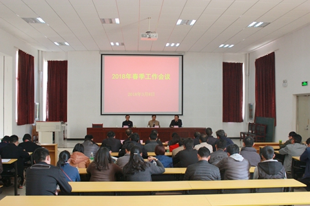 通知中心2018年3月8日下午,我院在小哨校區綜合樓一樓報告廳召開2018年春季工作會議,學院黨政領導班子全體成員及副科級以上干部參加會議,會議由黨委書記崔金賦主持。