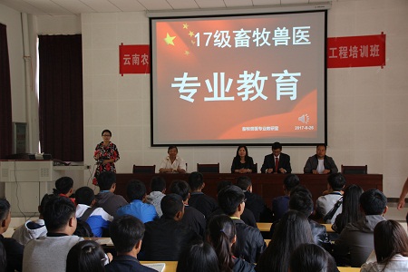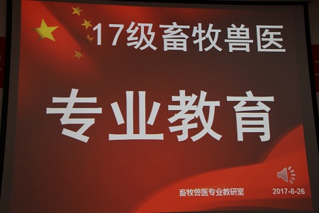 8月26日上午,王銳老師、王關躍老師、施忠芬老師、荀來武老師、何加俊老師在小哨校區階梯教室對畜牧獸醫學院2017級新生開展專業教育及動員會。