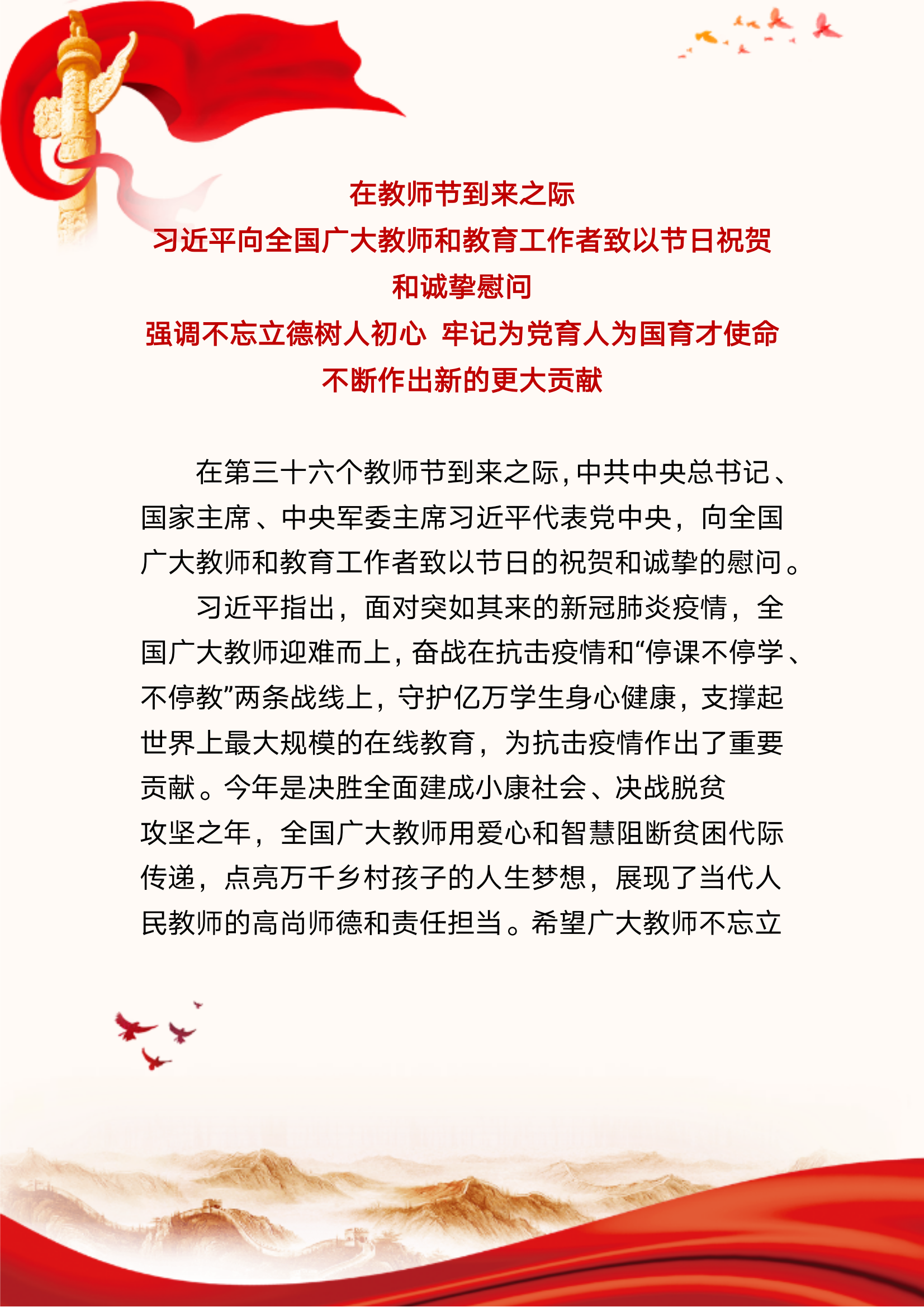 習近平向全國廣大教師和教育工作者致以節日祝賀和誠摯慰問
