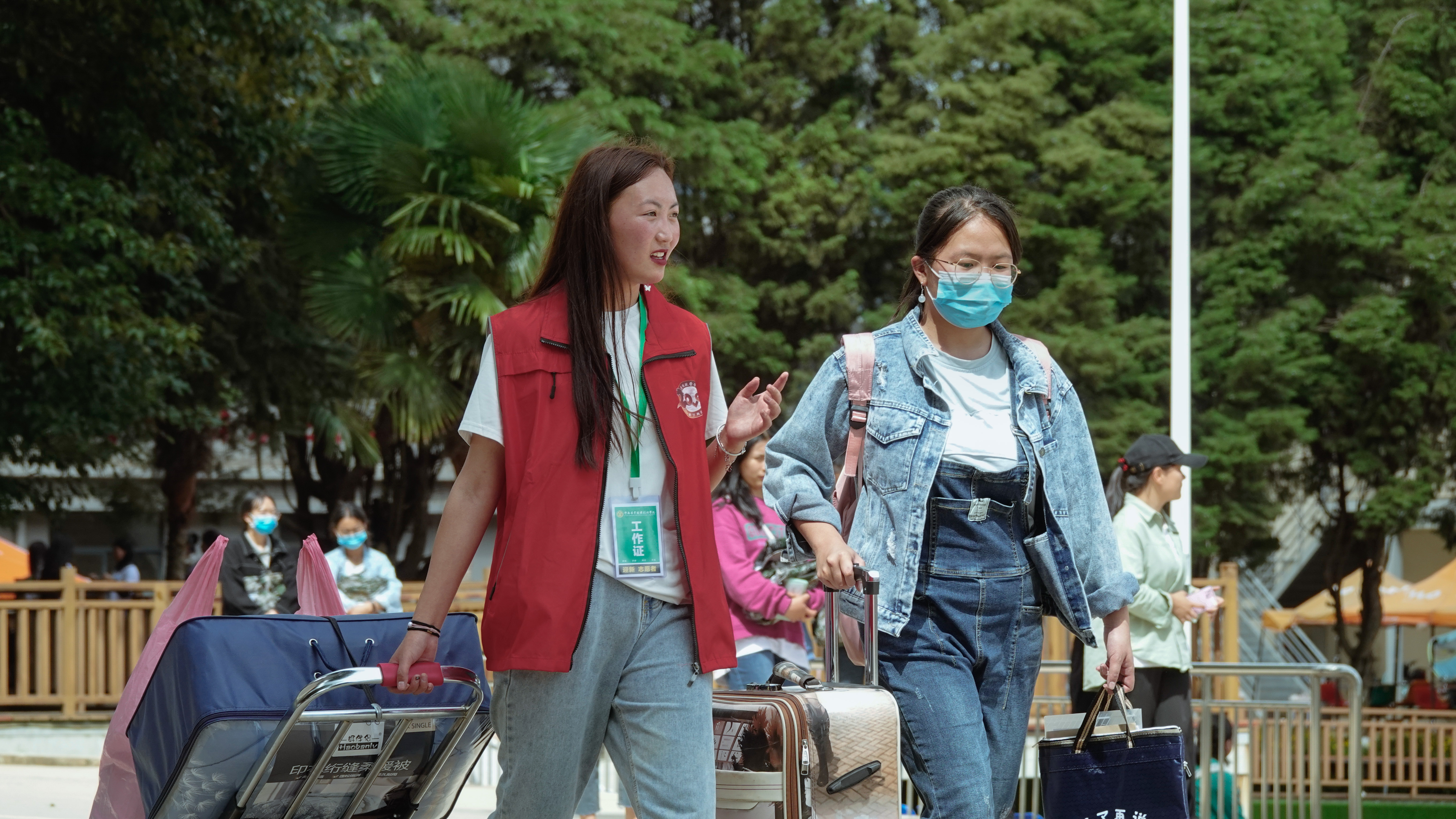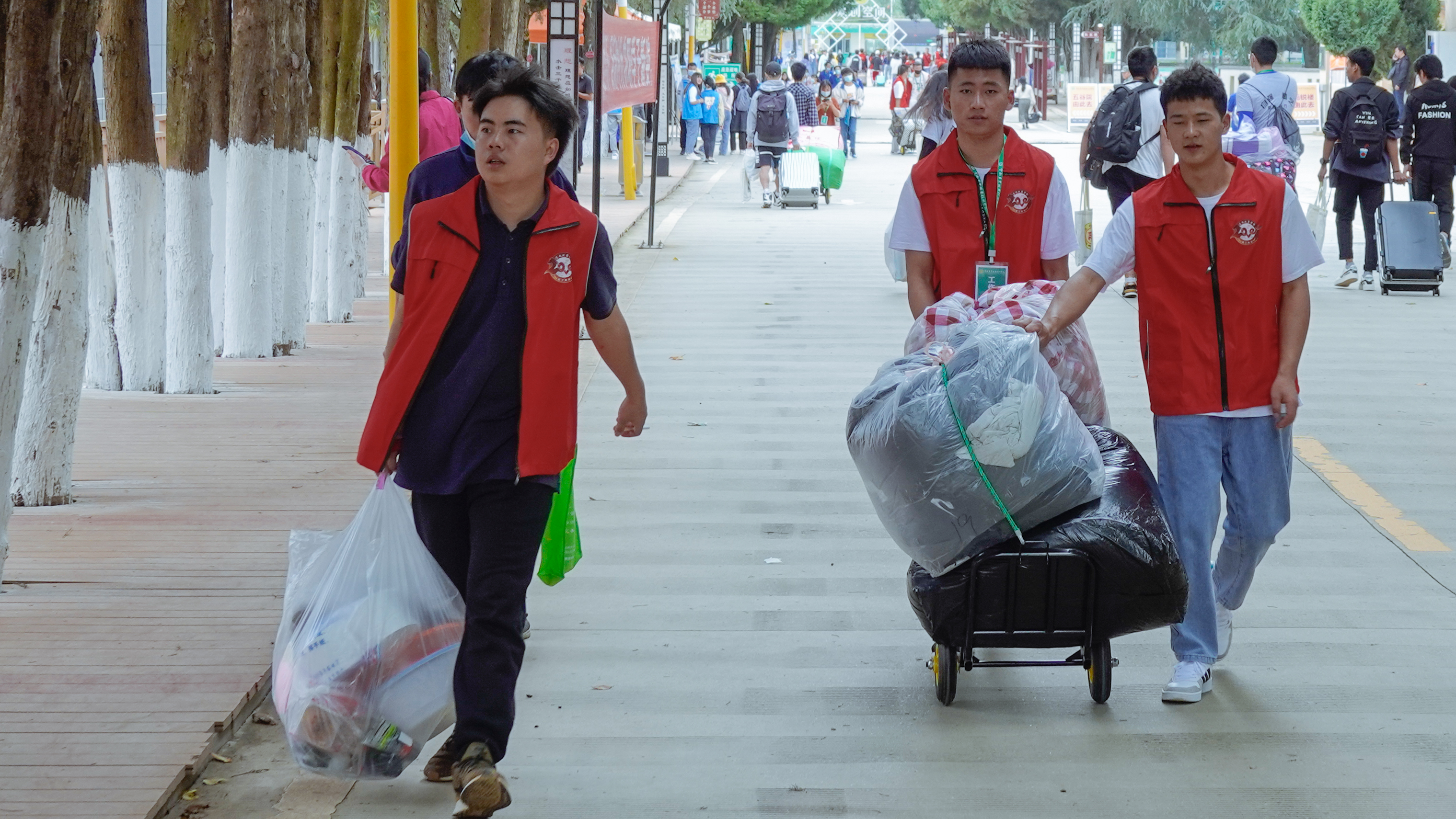 通知中心9月28日,秋風徐徐,云淡風輕,校園內(nèi)外人聲鼎沸,學院小哨校區(qū)首接2020級第一批新生。初秋的農(nóng)職校園處處洋溢著青春的活力與朝氣,彩繪、條幅、彩旗熱情地歡迎著新學子。為保證在疫情防控期間新生報到工作能夠安全有序開展,各二級學院新生分批入校報到,雖然新生家長不能陪同入校,但是親切的老師、熱情志愿者讓初到校園的新生們感受到家的溫暖,迎新的老師和志愿者們有條不絮地引導新生辦理入學報到手續(xù)。農(nóng)耕文化廣場上,迎新服務(wù)區(qū)、綠色通道咨詢區(qū)、飲水區(qū)、行李管理區(qū)等等,每一處迎新細節(jié)深處承載著滿滿的溫暖。