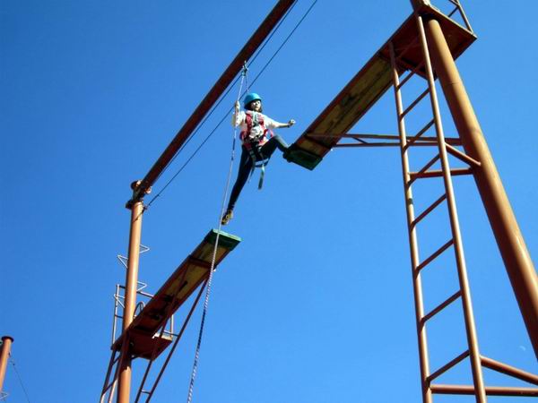 這次的訓(xùn)練分組進行,一共進行了“桃花朵朵開”、“老虎獵人搶”、“挑戰(zhàn)60秒”、“高空斷橋”、“高空平衡木”、“有軌電車”等6個項目的訓(xùn)練。每個項目大家都積極參與、發(fā)揮所長、勇敢挑戰(zhàn)。看似簡單的小游戲卻給大家留下了深刻的印象和啟示;每個游戲結(jié)束后教練員都會跟進交流,從中學(xué)到了很多道理。在此次活動中,同學(xué)們的團隊協(xié)作精神得到了充分的鍛煉,凝聚力得到了提高,更加懂得了隊友彼此間的重要性;通過磨合,增添了友誼與默契,展示出了新時代大學(xué)生的蓬勃朝氣和競技熱情。