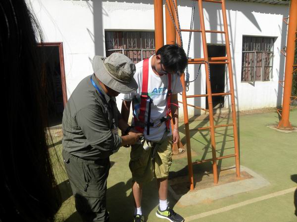初冬的小哨清晨白霧茫茫,涼意襲人,但是這些都阻止不了同學(xué)們的熱情,每個都是“全副武裝”,神采奕奕。迎著晨光隊伍于10點到達(dá)了目的地—昆明野鴨湖素質(zhì)拓展基地,等待大家的除了陽光、帥氣的教練外,還有的是意志體力的挑戰(zhàn)。