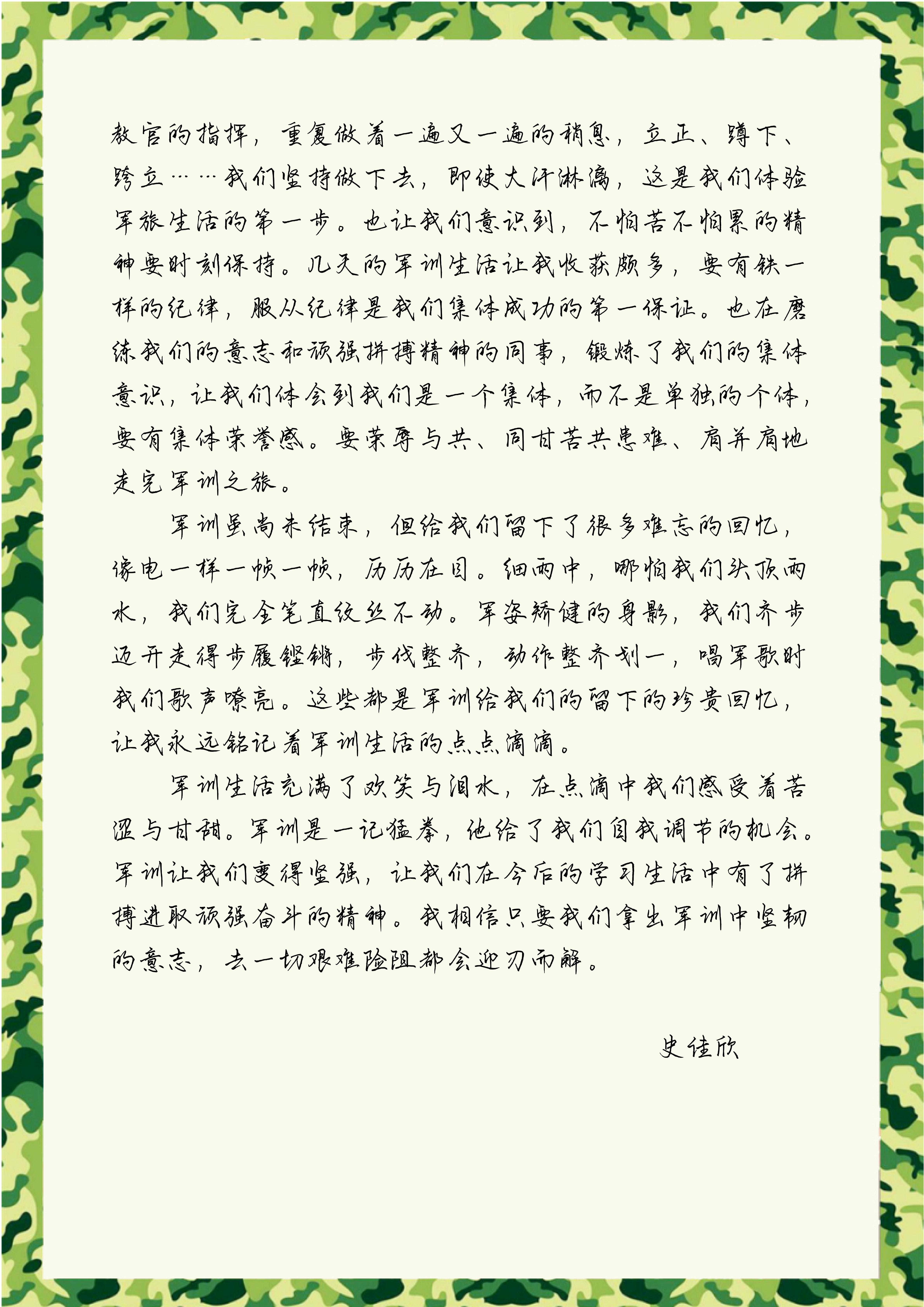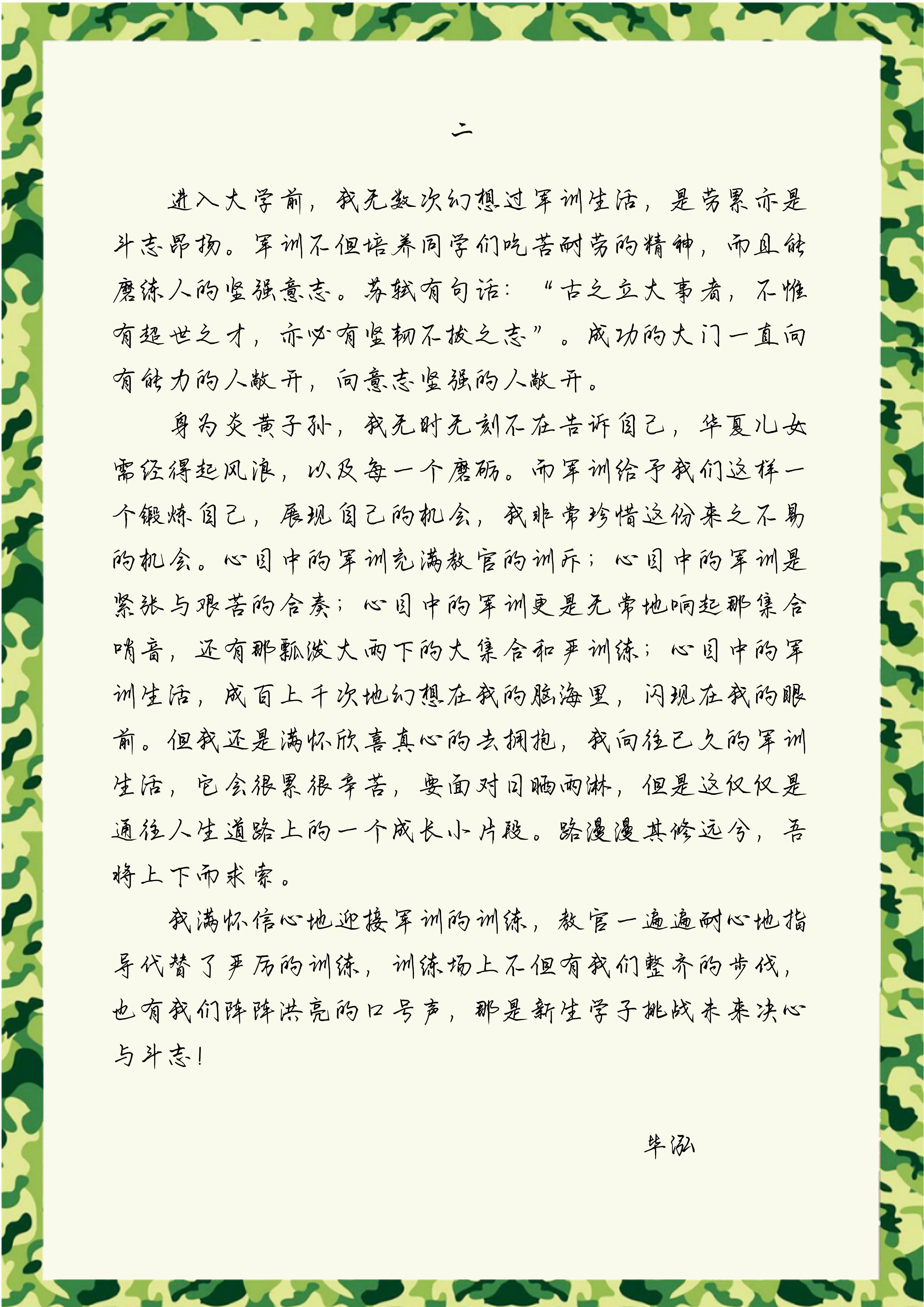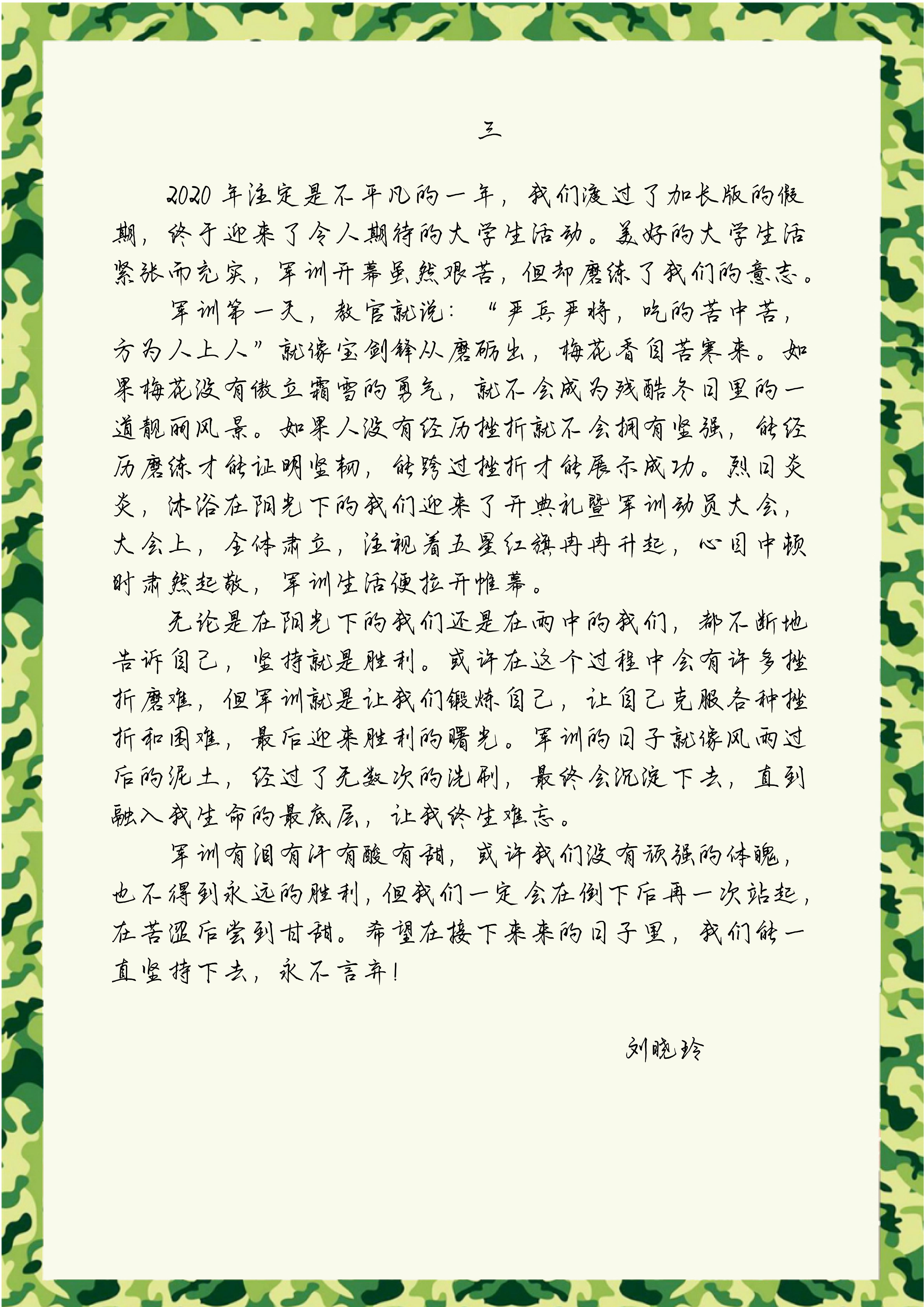 清晨時的軍訓(xùn)新生們帶著蓬勃的朝氣,在教官的帶領(lǐng)下,不厭其煩地做著每一個動作,力求做得更好。這期間雖然辛苦,但也慶幸能把動作做的一遍比一遍好,這大有苦中作樂的韻味。
