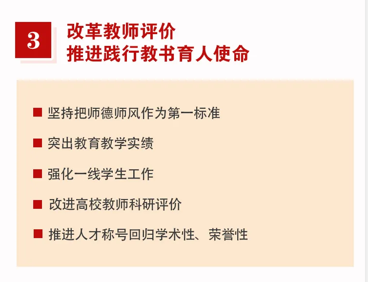 9.堅持把師德師風(fēng)作為第一標(biāo)準。堅決克服重科研輕教學(xué)、重教書輕育人等現(xiàn)象,把師德表現(xiàn)作為教師資格定期注冊、業(yè)績考核、職稱評聘、評優(yōu)獎勵首要要求,強化教師思想政治素質(zhì)考察,推動師德師風(fēng)建設(shè)常態(tài)化、長效化。健全教師榮譽制度,發(fā)揮典型示范引領(lǐng)作用。全面落實新時代幼兒園、中小學(xué)、高校教師職業(yè)行為準則,建立師德失范行為通報警示制度。對出現(xiàn)嚴重師德師風(fēng)問題的教師,探索實施教育全行業(yè)禁入制度。