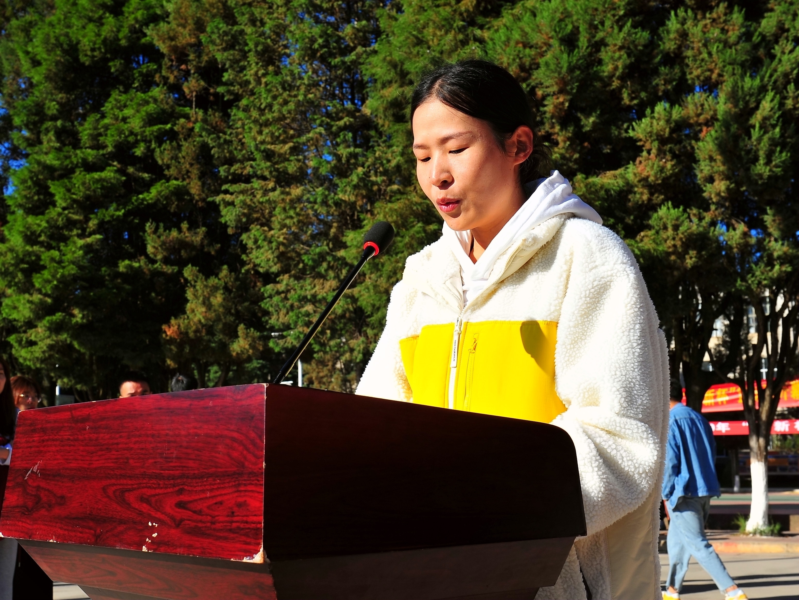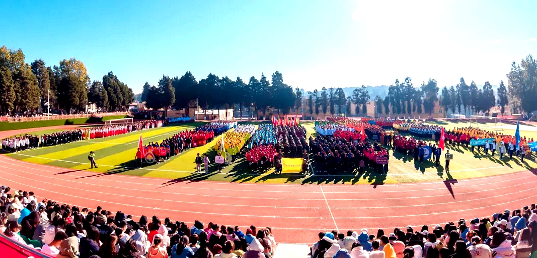 迎著初冬早晨明媚的陽光,伴隨著激昂奮進的《運動員進行曲》的節奏,運動會開幕式拉開序幕,各代表隊運動員和比賽裁判員依次入場,他們穿著整齊的服裝,喊著嘹亮的口號,邁著堅實的步伐向主席臺走來。首先國旗方隊入場,看到國旗在風中飄揚,全校師生心中頓時涌起無限的愛國之情。緊隨國旗方隊的是校旗、校訓和彩旗方隊。充分展現了學院欣欣向榮、蓬勃發展的新景象,也預示著學院積極進取、力爭上游的新風貌。隨后,由行政部門、馬克思主義學院和基礎部教職工組成的教工方隊和各二級學院的方隊依次入場,他們邁著整齊統一的步伐,以飽滿的精神狀態經過主席臺,喊著響亮的口號,展現農職學子朝氣蓬勃的精神面貌,盡情展示了各個學院的特色和風采。