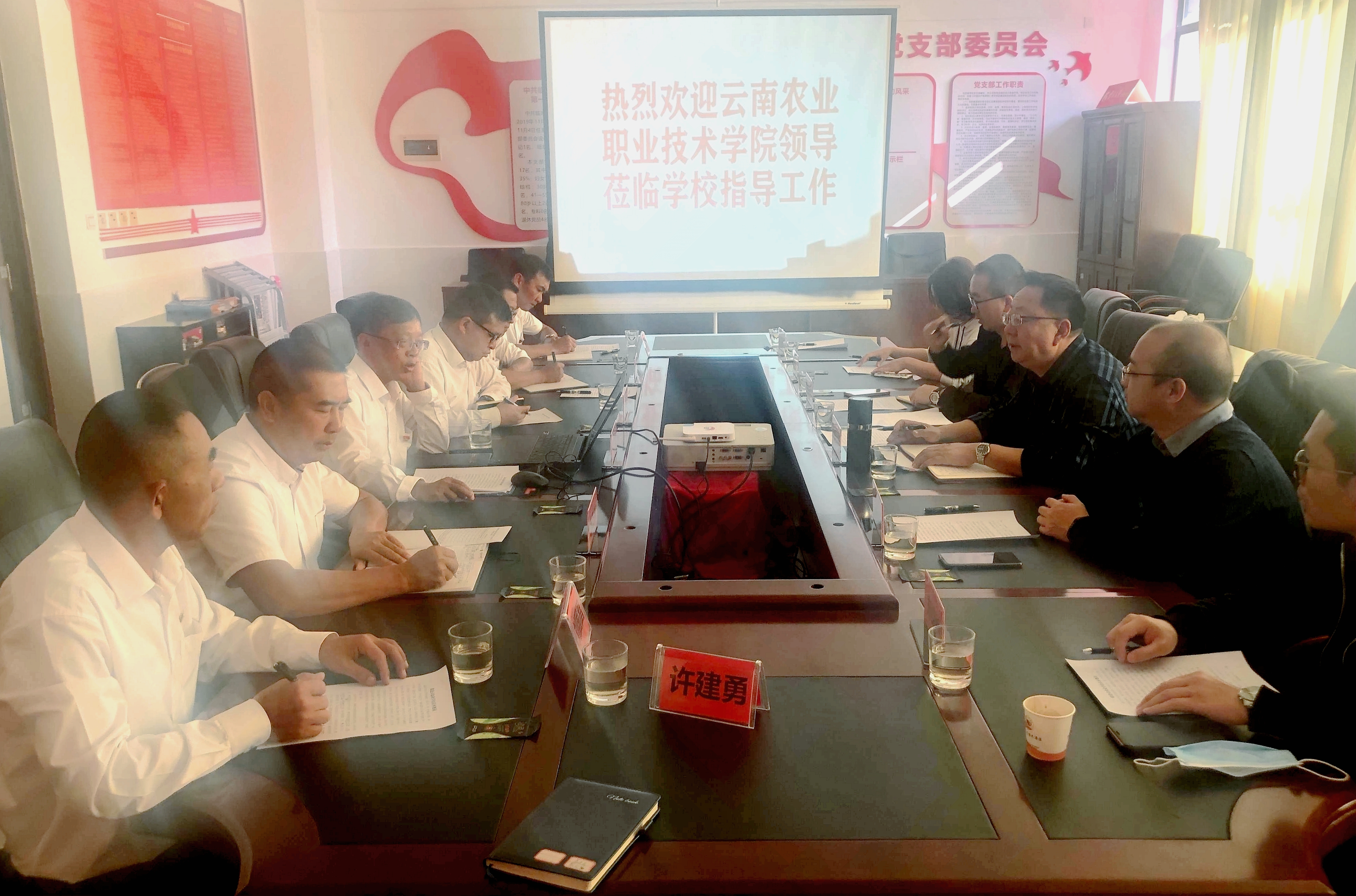 參觀后,文俊院長(zhǎng)一行與臨滄市農(nóng)業(yè)學(xué)校領(lǐng)導(dǎo)班子召開座談會(huì)議,雙方就下一步兩校合作辦學(xué)、合作發(fā)展進(jìn)行深入交流。(辦公室(黨委巡察辦)供稿/文圖:夏體韜/審核:楊筱瑩/責(zé)任編輯:普仲凱)