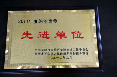 據龍翔接到工作委員會《龍翔街道工委 街道辦事處關于對2011年度綜治維穩暨消防、安全生產工作先進單位、先進集體、先進個人進行表彰的決定》(龍工委【2012】19號)文件獲悉,五華區龍翔辦事處共表彰綜治維穩先進單位15家,消防、安全生產先進單位9家,先進集體10家,綜治維穩先進個人45人,安全生產先進個人21人。其中我院榮獲龍翔地區綜治維穩單位榮譽稱號。