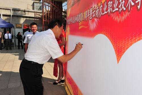 學院黨委書記崔金賦同志代表學院致辭隆重慶祝學院成立106周年,歡迎農(nóng)業(yè)廳廳長張玉明、副廳長孫海清及省委宣傳部、省政府、省教育廳、臨滄師專、麗江師專等部門和單位的領導和嘉賓,新聞界的朋友蒞臨學院指導!孫海清副廳長代表省農(nóng)業(yè)廳致辭表示祝賀;學院老領導、原云南省農(nóng)業(yè)學校校長李鑄聲為演出題詞并發(fā)表熱情洋溢的講話;學院93歲的老教師孫奎鉞;學院校友、全國優(yōu)秀宣傳干部鄭坰靖同志的妻子楊翠芝;紅河州農(nóng)業(yè)局等單位紛紛發(fā)來賀信,祝賀學院建校106周年!
