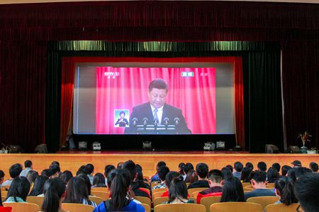 思政課教師課堂上組織學生收看,會后思政課教師組織學生對習近平總書記的講話展開了熱烈地討論。思政部主任張英召開部門會議,再次學習習近平總書記的重要講話精神并展開了積極討論,要求全體思政課教師在接下來的工作中,不僅要堅持把馬克思主義這個看家本領學通,更要為推動習近平新時代中國特色社會主義思想和黨的十九大精神,即當代中國的馬克思主義進校園、進課堂、進頭腦,發揮應有作用,要發揚馬克思主義真理的魅力,運用真理的力量引領青年學生,使我院學生成為能夠擔當中華民族復興大任的時代新人。(黨委宣傳部、思想政治理論教學部供稿)