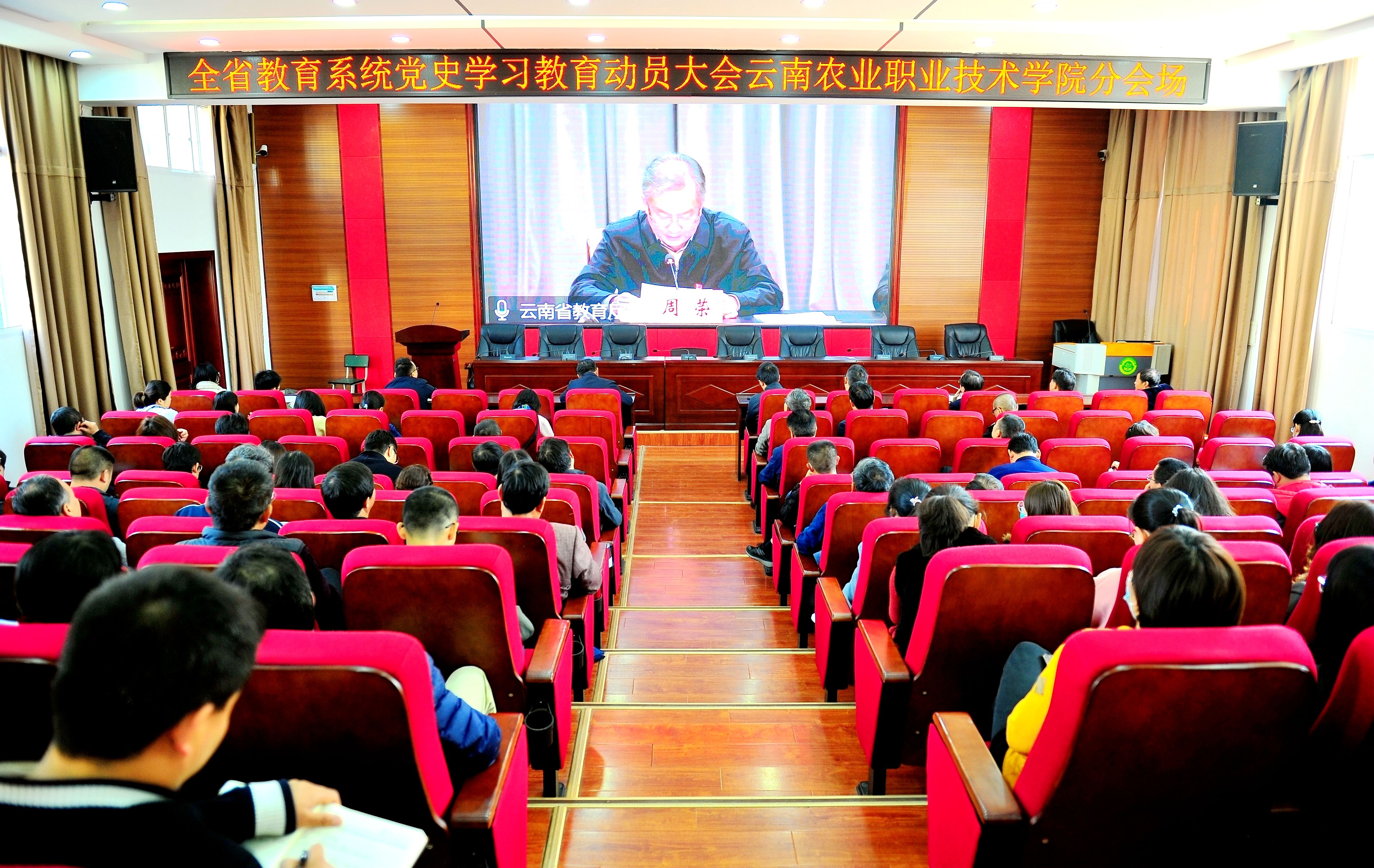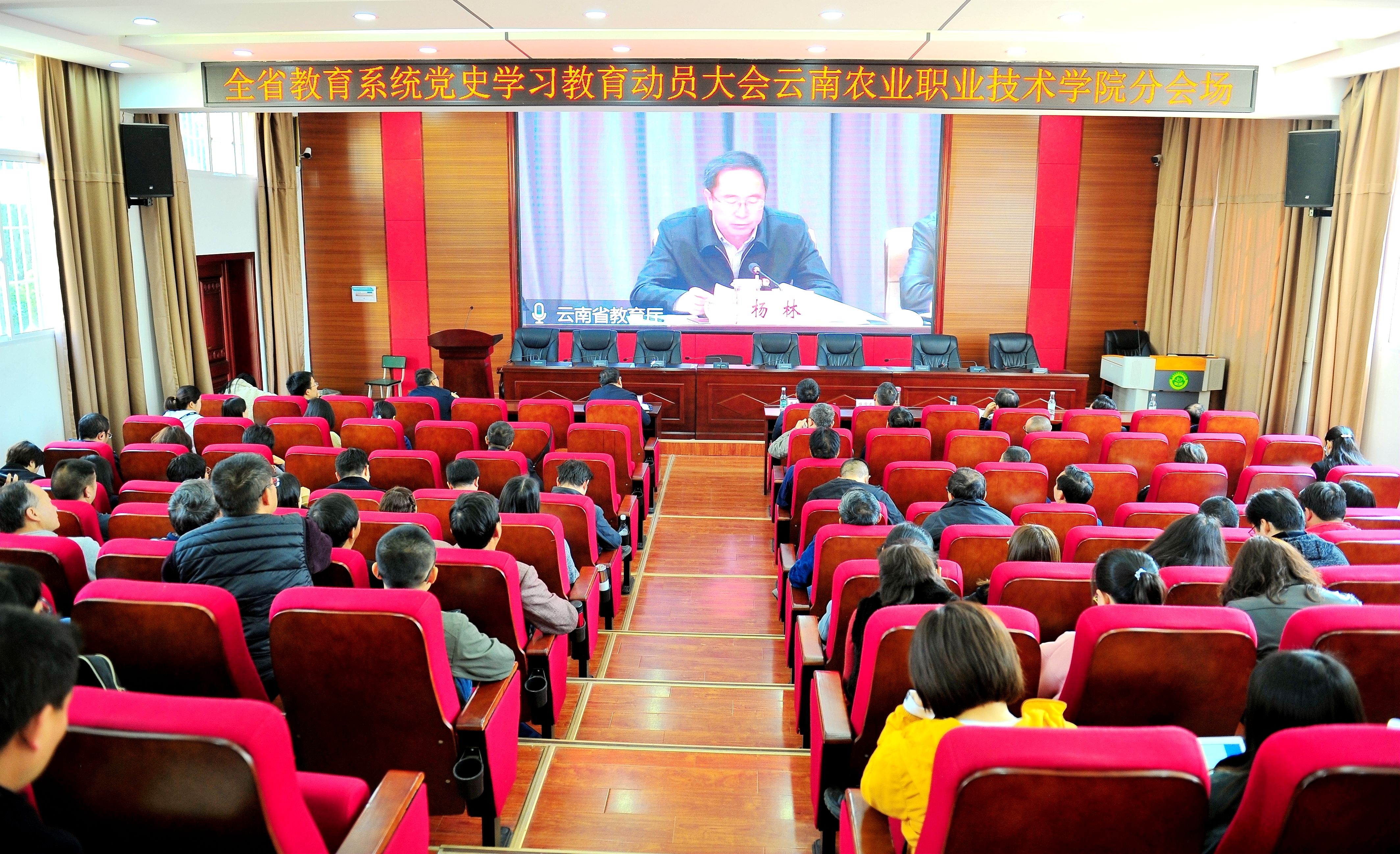 3月12日上午,全省教育系統黨史學習教育動員大會以視頻會形式在昆明召開,會議由省委教育工委常務副書記楊林主持。我院在小哨校區嘉銳樓報告廳設置分會場,學院黨政領導班子成員、全體中層干部、各黨支部書記參加了會議。