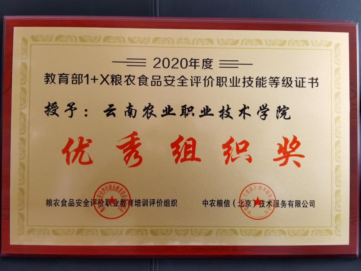 在教育部“1+X”糧農食品安全職業(yè)教育評價組織2021年1月28日召開的2020年度“1+X”糧農食品安全評價工作總結表彰會中,學院榮獲“領軍院校獎”、“優(yōu)秀師資團隊獎”和“優(yōu)秀組織獎”,標志著我院開展的此次試點工作獲得圓滿成功,糧農食品“1+X”證書工作進入一個嶄新階段。同時,也為我院下一步開展藥學類“1+X”證書工作提供了寶貴經(jīng)驗。(食品藥品大健康學院供稿 /文:王孟宇/圖:張云蓉/審核:楊筱瑩/責任編輯:普仲凱)