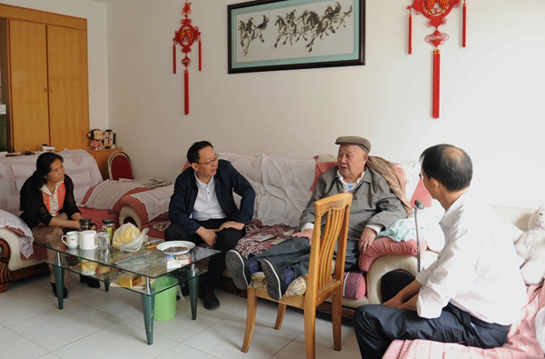 校領導到了農職培訓中心、春暉小區西山區政府宿舍和創意英國等地,在朱治受、劉仲衡、郜進元、張毅、譚義斌和楊經武等老黨員家中與他們深切交談,噓寒問暖,關心他們的思想和生活,詳細了解他們目前的衣食起居、生活身體狀況,讓他們切實感受到組織的關懷和溫暖。校領導代表學校給老同志送去慰問金,祝福他們身體健康、幸福長壽。交談中,老干部們對學校一直以來在生活上給予的關心和照顧表示感謝。