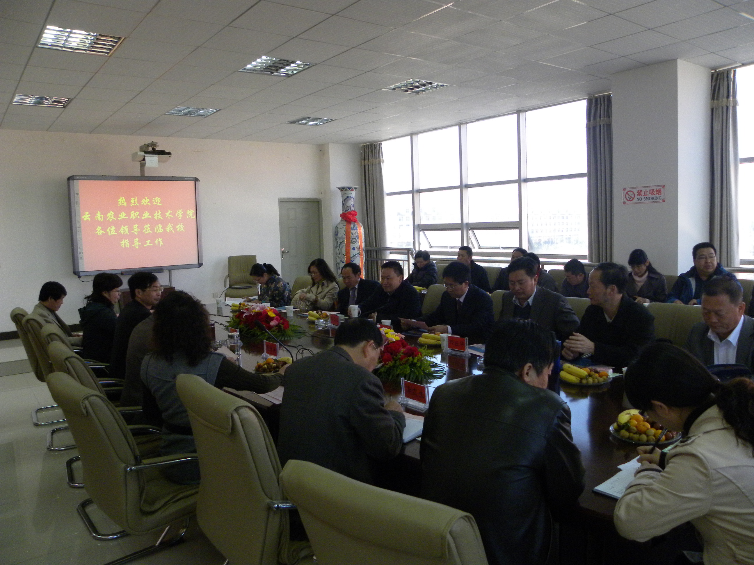 接下來,學院黨委書記崔金賦介紹了我院的歷史發(fā)展。崔書記講到我國的農業(yè)發(fā)展還處于落后水平,“三農問題”是我國政府一直十分關注的問題,但作為農業(yè)職業(yè)技術學院,學院發(fā)展面臨很多困難和瓶頸,我院的辦學條件與醫(yī)專辦學的基本條件相比,有很大的差距。此次考察交流,是為了讓我院老師進一步了解高等職業(yè)教育發(fā)展的情況,學習先進的辦學和管理經驗,并代表學院邀請曲靖醫(yī)專的領導和老師到我院交流。