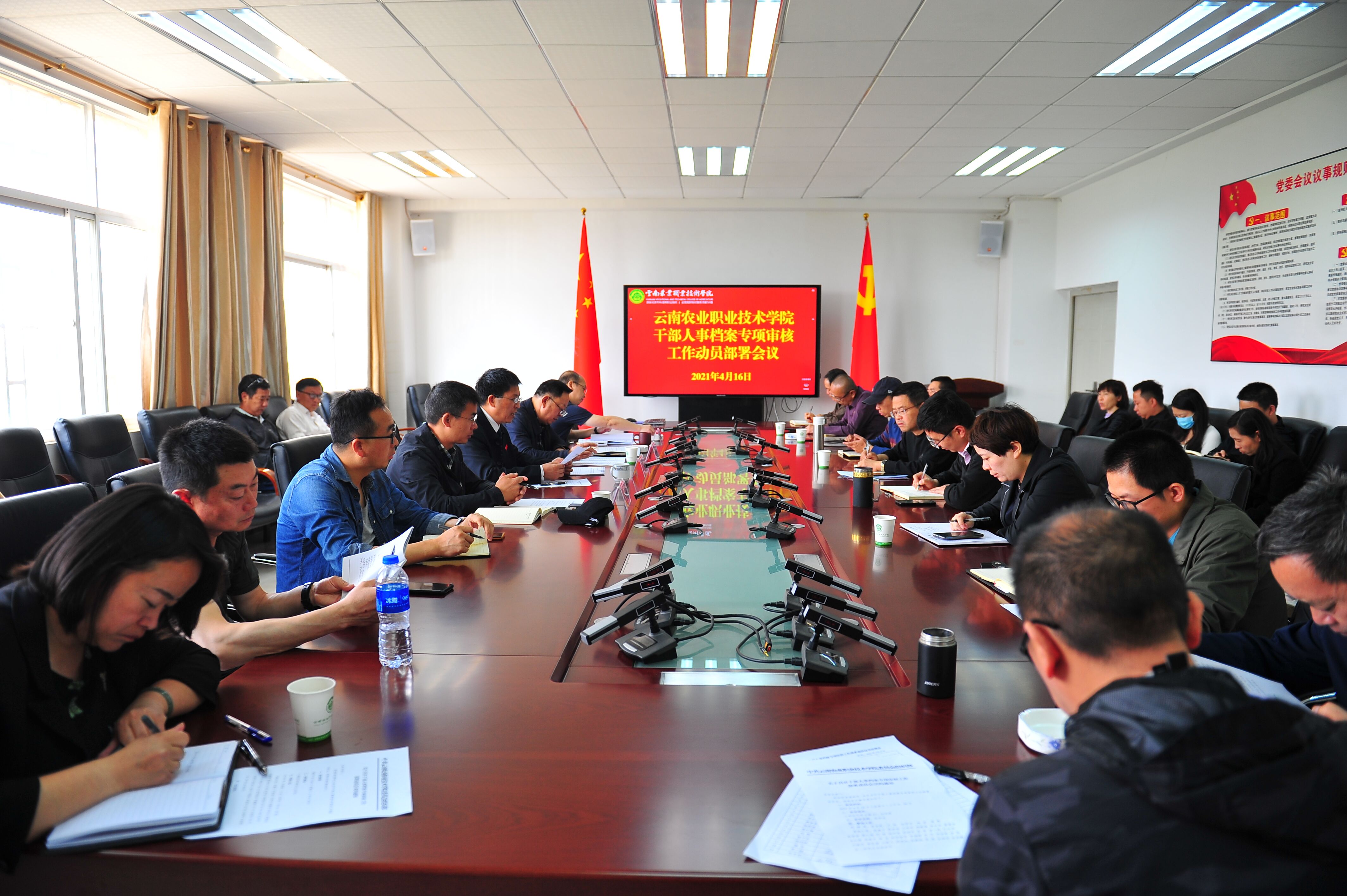 通知中心4月16日,學院在小哨校區綜合樓421會議室召開干部人事檔案專項審核工作動員部署會。學院黨委對本次動員部署會高度重視,黨委書記崔金賦、院長文俊、副院長楊波、干部人事檔案專項審核工作領導小組和領導小組辦公室成員參會,會議由黨委副書記伍學龍同志主持。