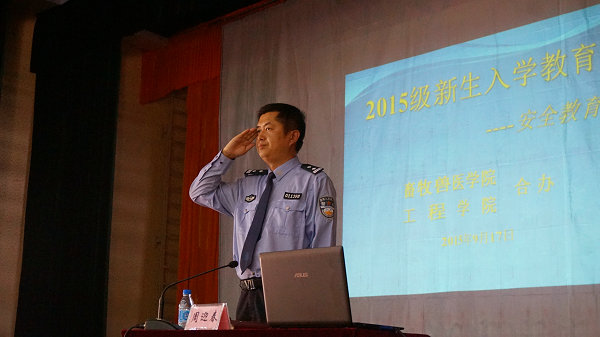 通知中心2015年9月17日中午13:00,畜牧獸醫(yī)學(xué)院和工程學(xué)院830余名新生在小哨校區(qū)大禮堂共同舉辦“大學(xué)生安全防范講座”。本次講座邀請(qǐng)了昆明市公安局便衣偵查分局政治處主任周迎春,為同學(xué)們介紹大學(xué)生群體中容易遇到的各類案件,以及相關(guān)的安全防范要點(diǎn)。畜牧獸醫(yī)學(xué)院黨總支書記錢林東、工程學(xué)院院長(zhǎng)李一源等出席聆聽了講座。講座由工程學(xué)院院長(zhǎng)李一源主持。