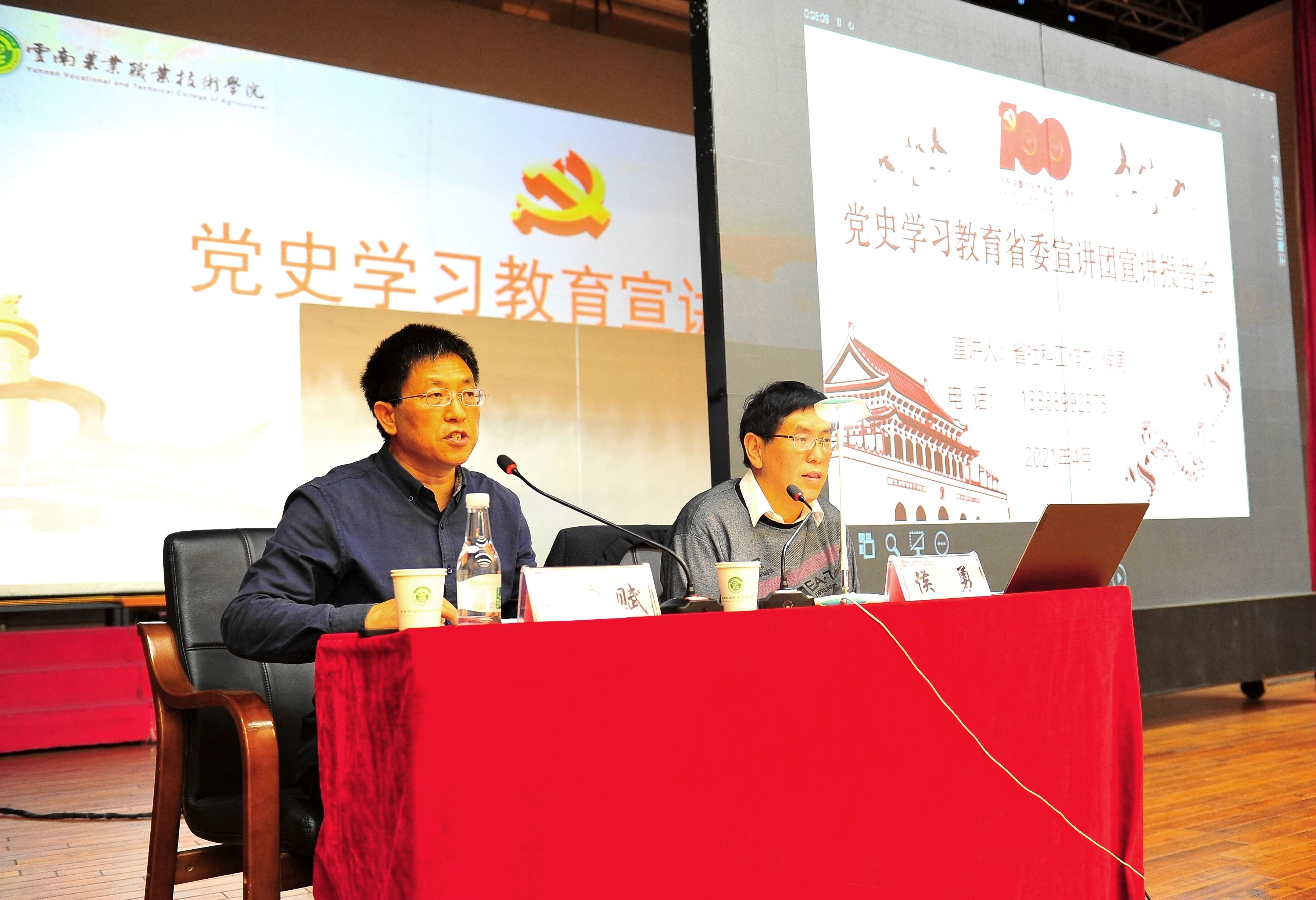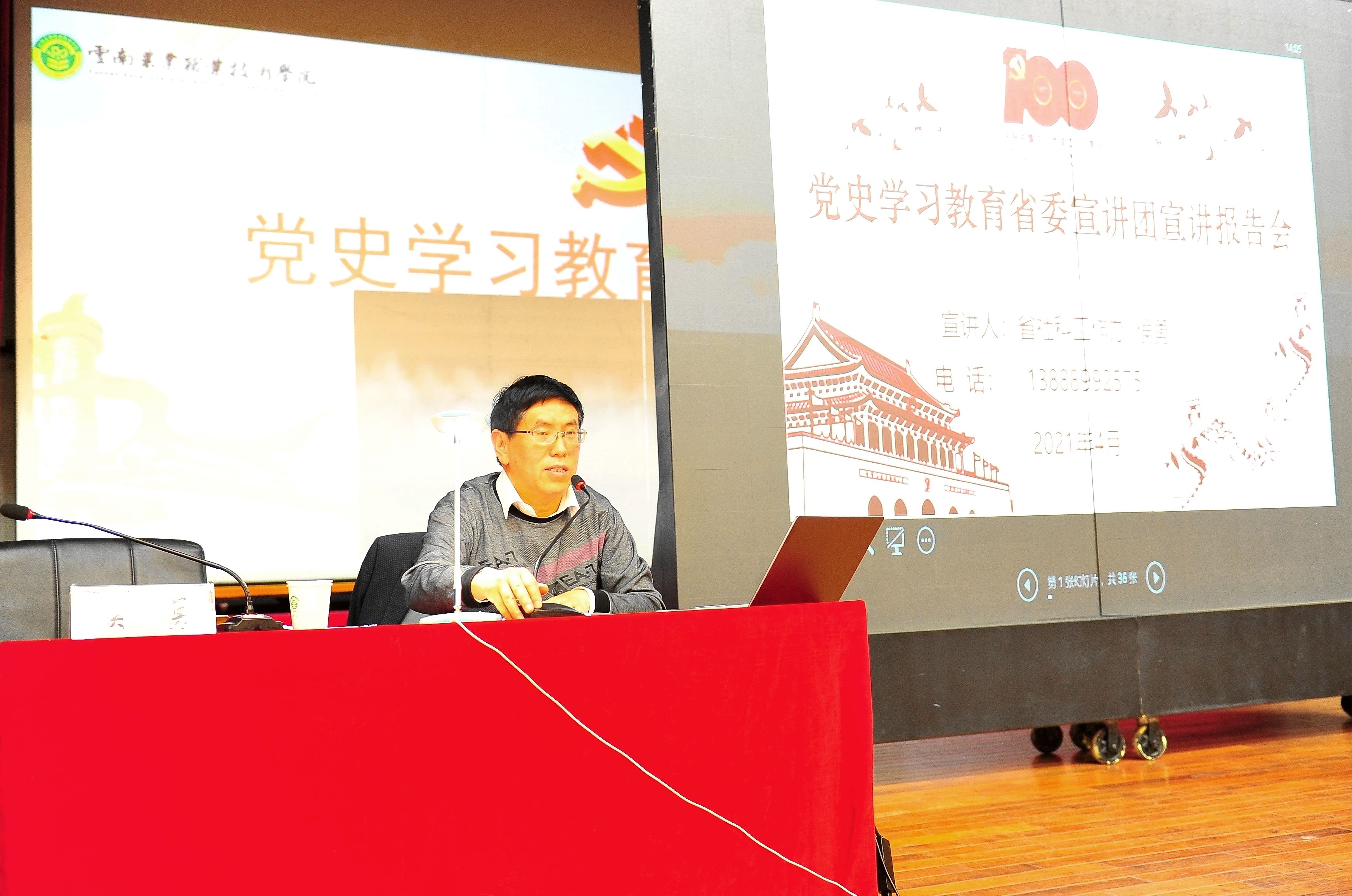 侯勇老師從充分認識開展黨史學習教育的重大意義、全面了解中國共產黨百年奮斗的光輝歷程和歷史性貢獻、深刻把握學習好黨史學習教育的重點、從黨的百年奮斗史中汲取奮進新征程的強大力量、為云南開創全面建設社會主義現代化新局面不懈奮斗等五個方面作了精彩的宣講。候勇老師指出,在中國共產黨百年華誕的重大時刻和“兩個一百年”奮斗目標歷史交匯的關鍵節點,全省各族人民要更加緊密地團結在以習近平同志為核心的黨中央周圍,以昂揚姿態奮力開啟全面建設社會主義現代化國家新征程,以優異成績迎接建黨100周年!
