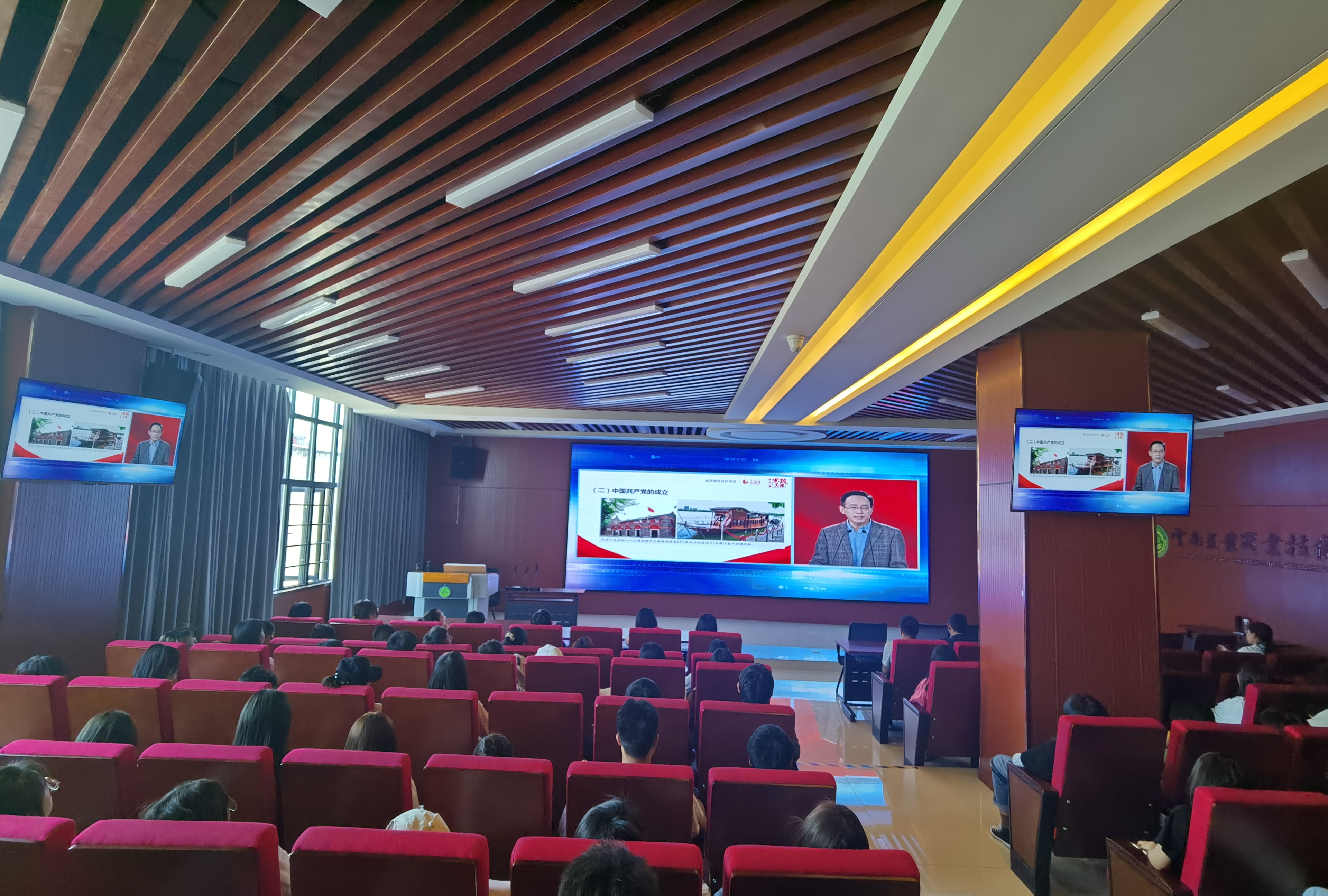 歷史是最好的教科書,蘊含著生生不息的思想力量、文化基因、精神動能。本次思政大課上,北京師范大學馬克思主義學院趙朝峰教授以“馬克思主義與中國共產黨的百年輝煌”為題,詳細講述了中國先進分子選擇馬克思主義與中國共產黨的成立、中國共產黨運用馬克思主義創造的輝煌成就及啟示;武漢大學馬克思主義學院的盧勇副教授以“中國共產黨與中華民族的偉大復興”為題,以時間為線索,就新民主主義革命時期、社會主義革命和建設時期、改革開放和社會主義現代化建設新時期、中國特色社會主義進入新時代進行了詳細講解;南京航天航空大學馬克思主義學院何畏教授以“中國共產黨革命精神形成與傳承的百年歷程”為題,詳細講解了不同歷史時期中國共產黨所鑄就的偉大精神。短短的一個半小時,三位教授從不同的視角為我們清晰梳理了百年黨史發展歷程的脈絡,帶領師生共同感悟黨領導人民進行艱苦卓絕的奮斗歷程,深入了解黨的光榮傳統、寶貴經驗和偉大成就,激發了師生為中華民族偉大復興中國夢奮斗的信心和動力。