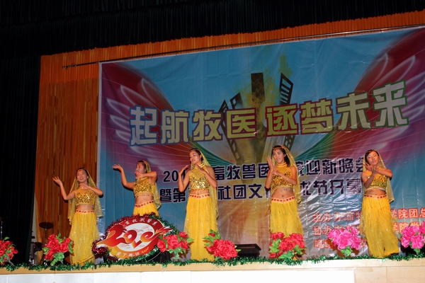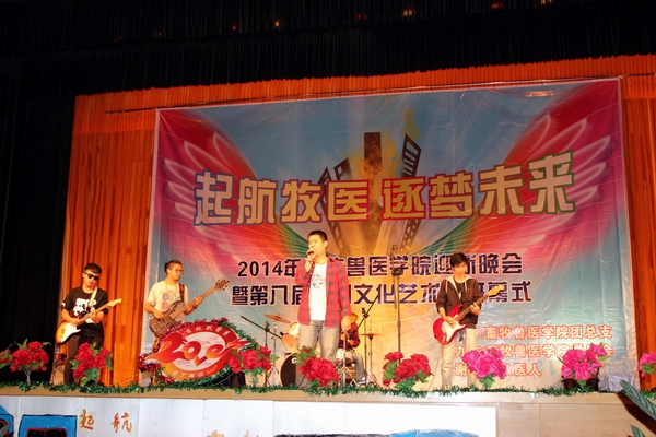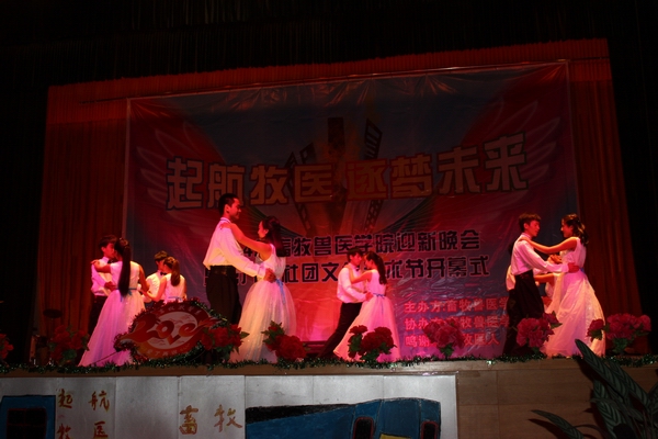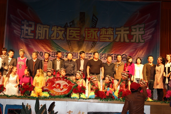 蒞臨本次晚會的嘉賓有畜牧獸醫學院院長趙躍,黨總支書記錢林東,楊明生副院長,法林榮副院長,畜牧獸醫學院團總支書記耿立春及畜牧獸醫系其他領導和各教研室主任;出席晚會的還有工程學院黨總支書記蔡永生,工程學院團總支書記蔡東。夜晚的天氣雖涼,但同學們似火的熱情,點燃了整個晚會的氣氛,這注定是一個難以忘記的夜晚。在吉他樂隊獻上激情動人的歌曲后,晚會正式開始。伴隨著熱烈的掌聲,錢林東書記為本次晚會致辭,精彩的致辭迎來了現場的熱烈歡呼。緊接著各種節目依次登場,異彩紛呈。《愛的華爾茲》和《如果這是你想要的情歌》體現了新生的懵懂情愫,《Bad Romance》和《甩銀袍》展現了當代大學生的激揚和熱情,散發了畜牧獸醫學院學生“起航牧醫 追夢未來”的新時代氣息。本次晚會歷時3個小時,最后主持人的閉幕福語為本次晚會畫上了完美的句號。