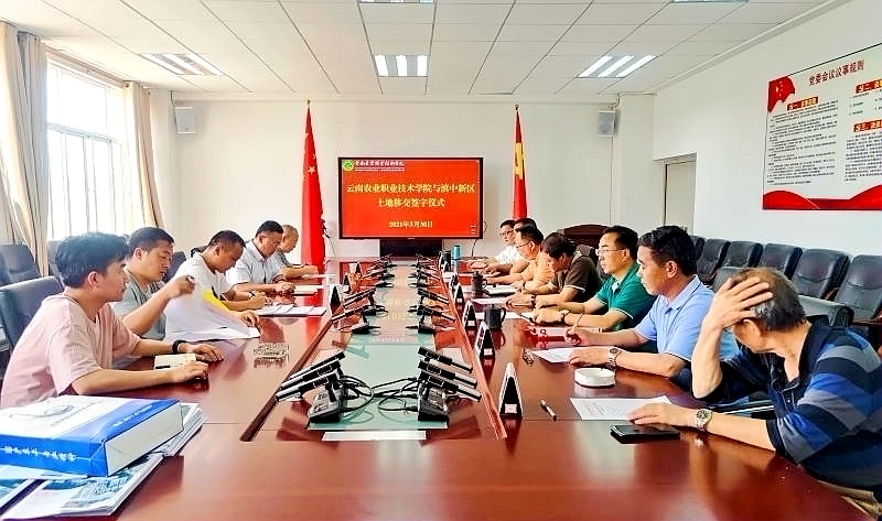 簽字儀式上,文俊院長向與會人員介紹了我校土地移交工作情況,指出學院高度重視土地移交工作,成立了工作專班,積極主動與滇中新區土儲中心對接,擬定了土地移交計劃,計劃分5個批次進行土地移交。本次擬將第一批次的4642.41畝土地移交給新區土儲中心。