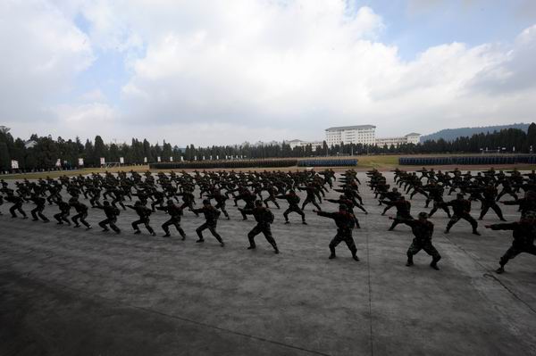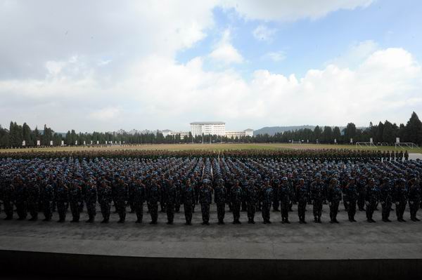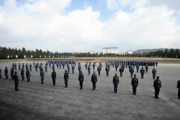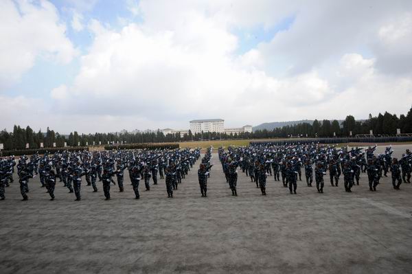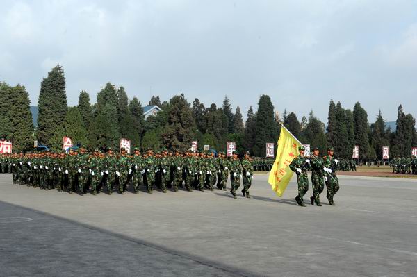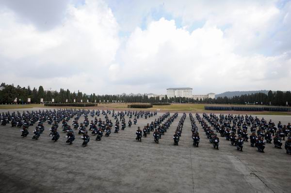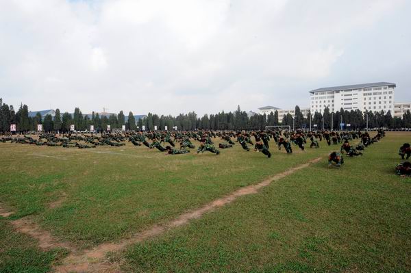 最后,崔金賦書記為本次新生軍訓作了總結講話。崔書記說,歷時兩周的2013級學生軍訓工作今天勝利結束了,我代表學院黨委向承擔本次軍訓任務的中國人民解放軍昆明民族干部培訓學院領導和官兵致以崇高的敬意!向參與組織這次軍訓的學院各部門、各系領導、輔導員和帶隊老師表示親切的慰問!向勝利完成各項軍訓任務的2013級全體同學表示熱烈的祝賀!崔書記指出,在緊張艱苦的軍訓中,同學們經受了一次嚴峻的考驗,也獲得了終生受益的精神財富。通過軍訓,同學們學習了軍事知識,掌握了一定的軍事技能,增強了國防意識,磨練了意志,增強了體質;懂得了如何面對困難,克服困難,如何用堅韌不拔的意志來支配自己的行動,并朝著既定目標不懈努力。我們欣喜地看到:軍訓期間,同學們不怕苦、不怕累,邁著矯健的步伐,喊著響亮的口號,唱著嘹亮的軍歌,認真練好每一個動作,掌握每一個要領,克服一道道難關,真正把這次軍訓當作是磨練意志、鍛煉身體、提升素質的好機會,充分展現了當代大學生的良好形象和精神風貌。剛才的會操,同學們精神振奮、步伐整齊、動作有力,表明本次軍訓達到了預期效果。軍訓將伴隨著同學們以后的學習、工作和生活,終生受益。崔書記要求同學們,軍訓雖然就要結束了,但同學們不能把它當作一個終結,而應該當作一個新的起點,要繼續發揚軍訓中養成的優良作風和艱苦奮斗、吃苦耐勞的革命精神,刻苦學習,以優異的成績和實際行動鞏固和發展軍訓成果。崔書記強調在今后的學習、生活中,同學們要時時處處按照軍訓期間的標準來嚴格要求自己,大力弘揚“耕道、養德、理想、開拓”的校訓精神,刻苦學習政治理論和科學文化知識,不斷完善知識結構,提高自己的綜合素養,尤其要注重實踐能力和創新精神的培養,爭做中國特色社會主義事業的合格建設者和可靠接班人。