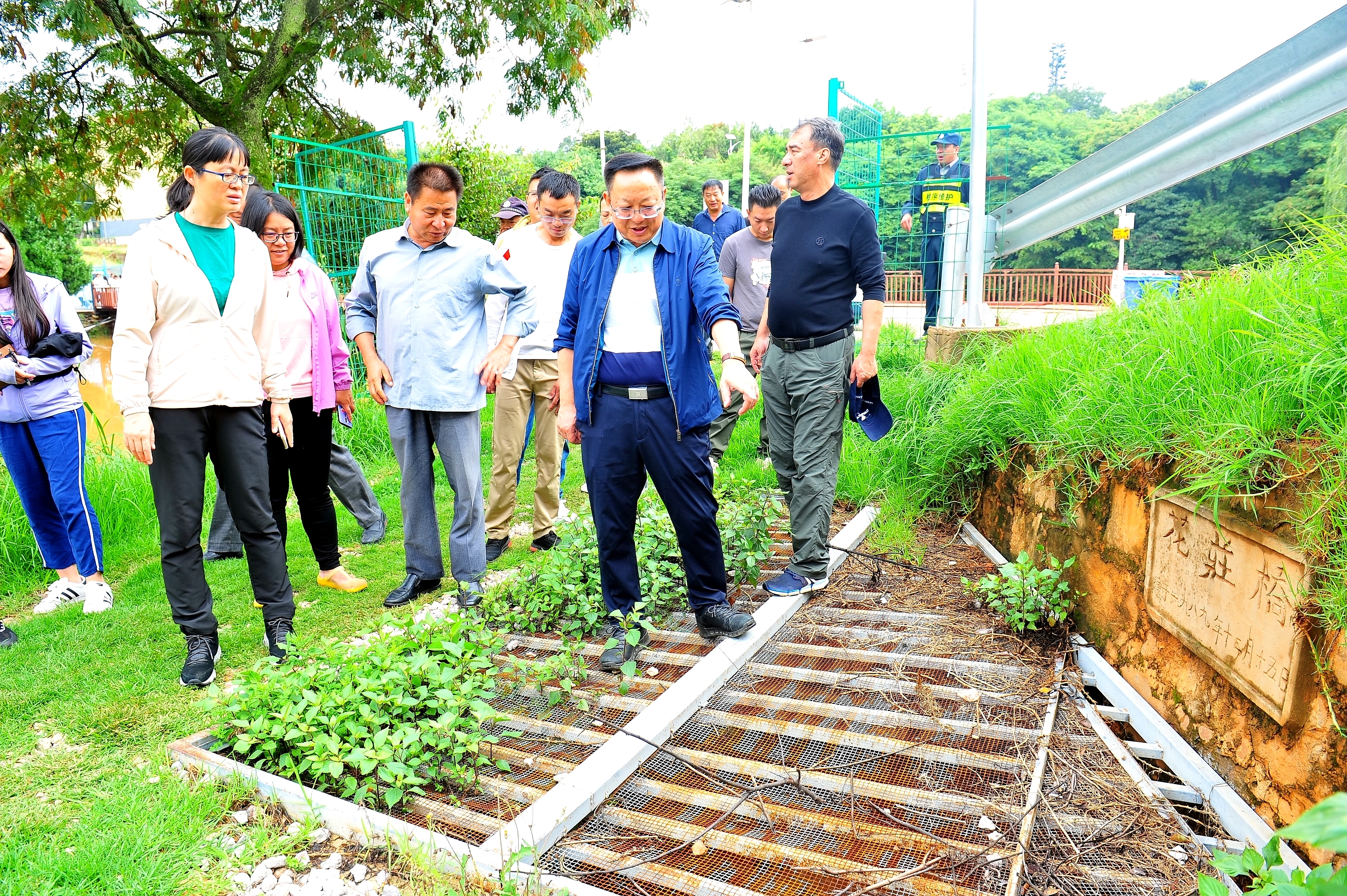 查看水產實訓基地泄洪口