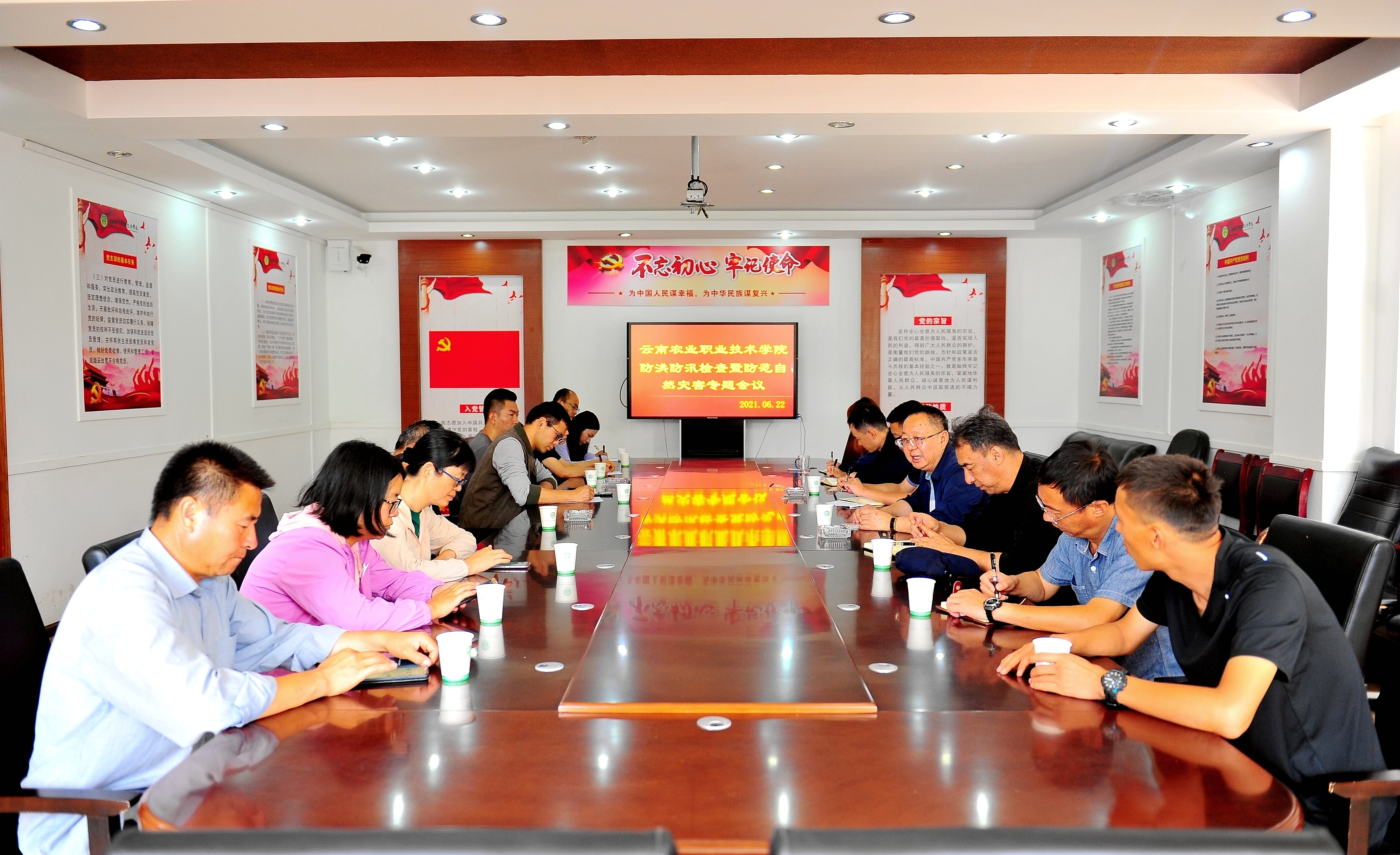 現場排查結束后,在學生服務中心二樓會議室學院防洪防汛檢查暨防范自然災害專題會議。會上文俊院長強調:一是要堅決落實好習近平總書記關于防汛救災工作的重要講話精神,科學嚴謹分析當前防汛抗災形勢,保持高度警惕,做好充分準備,把各項工作做實做細做到位,確保師生生命財產安全。二是要求后勤管理服務中心、學生處、實踐教學中心對排查出的問題和隱患能立即整改的,要立即整改;不能立即整改的,要制定隱患整改方案,按時限要求認真整改。三是辦公室做好總體防汛抗災統籌協調和督辦工作,宣傳部、學生處和團委要及時做好學生思想動態監測及正面引導工作;保衛處加強日常巡邏力度、發生險情及時投入安全保衛力量展開防汛救災工作;四是積極建言,各職能部門總結經驗聯合擬定應對防洪防汛應急預案,形成有效的應急處置、指揮行動方案。