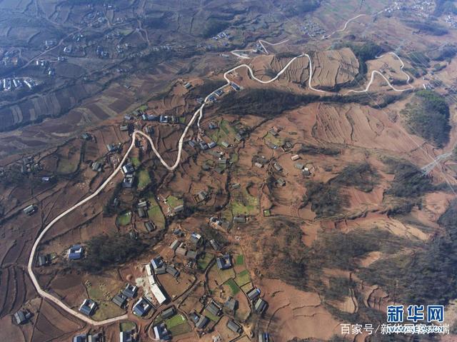 這是四川省涼山彝族自治州美姑縣四峨吉村約6公里的道路硬化項目(2017年2月12日攝,無人機照片)。2015年8月,蔣富安由涼山州審計局派到美姑縣九口鄉四峨吉村任駐村第一書記,2016年8月22日因勞累猝死,年僅26歲。新華社記者 劉坤 攝