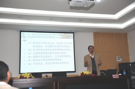朱教授在短短的一個半小時給我們全面清晰地介紹了我國有關審計的法律法規,特別是高校經濟責任審計的相關問題。我院廣大中層干部增長了知識,對加強廉潔自律有了更深刻的認識,受益匪淺、收獲頗豐。(黨委宣傳部 供稿)