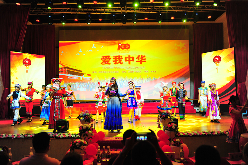 本次晚會的節(jié)目以合唱、朗誦、故事講述、歌舞等形式相繼上演,精彩紛呈。晚會在合唱《愛我中華》的澎湃歌聲中拉開序幕,精彩的節(jié)目接連上演,詩朗誦《百年芳--獻禮黨的百年華誕》徐徐打開“紅色的記憶”篇章,追憶了中國共產(chǎn)黨的創(chuàng)立,回顧了中國由弱到強的征程;詩朗誦《祖國到底是什么》向我們展示了在中國共產(chǎn)黨領導下的輝煌的祖國,是在世界的東方噴薄而出的生機盎然的中國;《英雄歸來》給我們預警,落后就要挨打,落后就要血流成河;《云嶺烽火?青春故事》引導著農(nóng)職學院一代又一代莘莘學子學習烈士精神,努力學習,積極奉獻,立志成才,報效祖國;紅歌聯(lián)唱《最美的歌獻給親愛的黨》表達著農(nóng)職人對黨最誠摯的愛,把現(xiàn)場氣氛推向高潮……晚會在全體師生齊聲高唱《沒有共產(chǎn)黨就沒有新中國》中圓滿結(jié)束。