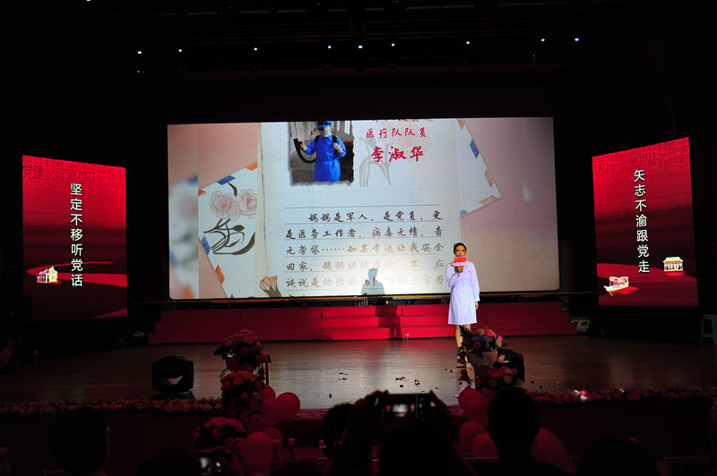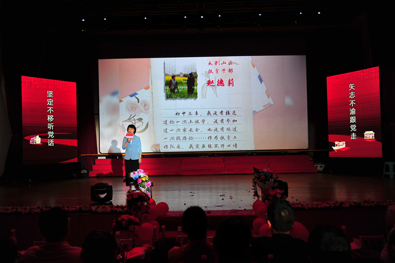 黨委書記崔金賦同志在演出開場前的致辭中回顧了百年來黨的偉大成就,一百年來,中國共產(chǎn)黨通過領導新民主主義革命,開天辟地地完成了救國大業(yè);通過領導社會主義革命和建設,改天換地地完成了興國大業(yè);通過領導改革開放和社會主義現(xiàn)代化建設,翻天覆地地推進了富國大業(yè),而此時,中國共產(chǎn)黨領導開創(chuàng)中國特色社會主義新時代,必將驚天動地地實現(xiàn)本世紀中葉的強國大業(yè)!在開場辭中,崔書記以一首《七律·寫在七一前夕》鼓勵大家:以當前正在開展的黨史學習教育為契機,緊密團結(jié)在以習近平同志為核心的黨中央周圍,堅持以習近平新時代中國特色社會主義思想為指引,高舉中國特色社會主義偉大旗幟,賡續(xù)共產(chǎn)黨人的紅色精神血脈,不忘初心,牢記使命,積極投身鄉(xiāng)村振興,以優(yōu)異的成績迎接中國共產(chǎn)黨建黨100周年。